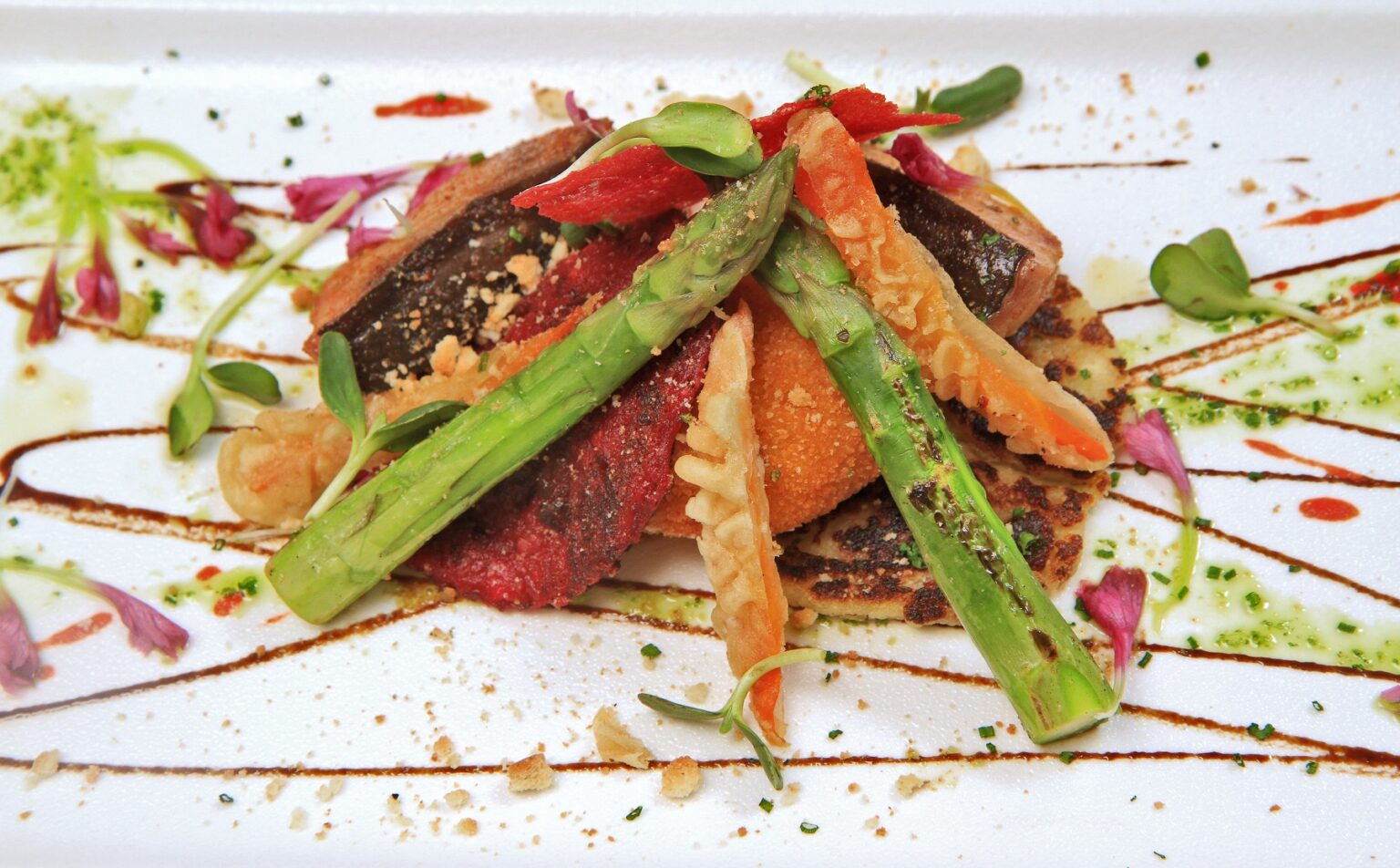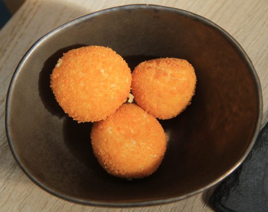 Šamas su varškės koralais, spurgyte ir morkomis varškės tempuroje (1 porc.)