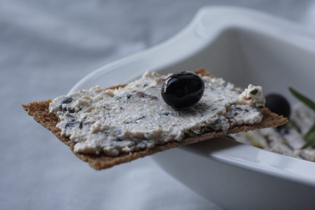 Užtepėlė su žolelėmis, alyvuogėmis ir pomidorais (4 porc.)
