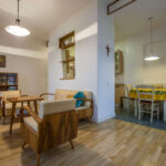 Kai galiausiai jis vis dėlto tapo L. Bytautaitės ir D. Rimkevičiaus nuosavybe, naujakuriams neprireikė imtis jokių esminių permainų. Patogiai erdves buvo suplanavęs prieš tai čia gyvenęs britas (apie šį būsto etapą primena koridoriuje esanti raktinė, priklausiusi ankstesniam savininkui). O autentiškas kokybiškas grindų parketas ir šiandien atrodo puikiai. Teliko malonioji įsikūrimo dalis – užpildyti namus baldais, meno kūriniais ir interjero aksesuarais.