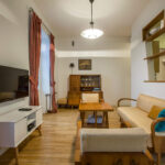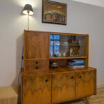 Atgimęs susidomėjimas tarpukario bei XX a. 5–8 dešimtmečių baldais Lietuvoje pastebimas jau kelerius metus. Tai liudija ir specializuotos parodos, ir gausėjančios vintažinių baldų bei aksesuarų prekybos vietos (taip pat šoktelėjusios kainos). Tačiau šiuose namuose beveik visas baldų paveldas yra paveldas tikrąja šio žodžio prasme. Sofos ir fotelių komplektas, keturkampis svetainės stalas, indauja – visa tai atkeliavę iš D. Rimkevičiaus tėvų ir senelių namų. Vilniečiams neprireikė anais laikais alsuojančių baldų ieškoti tikrose ar virtualiose prekyvietėse. Viskas čia – sava, regėta nuo vaikystės, kupina brangių prisiminimų. „Šitie baldai yra matę daug vakarėlių“, – juokiasi sutuoktiniai, kurių namuose svečių šurmulys – taip pat dažnas.