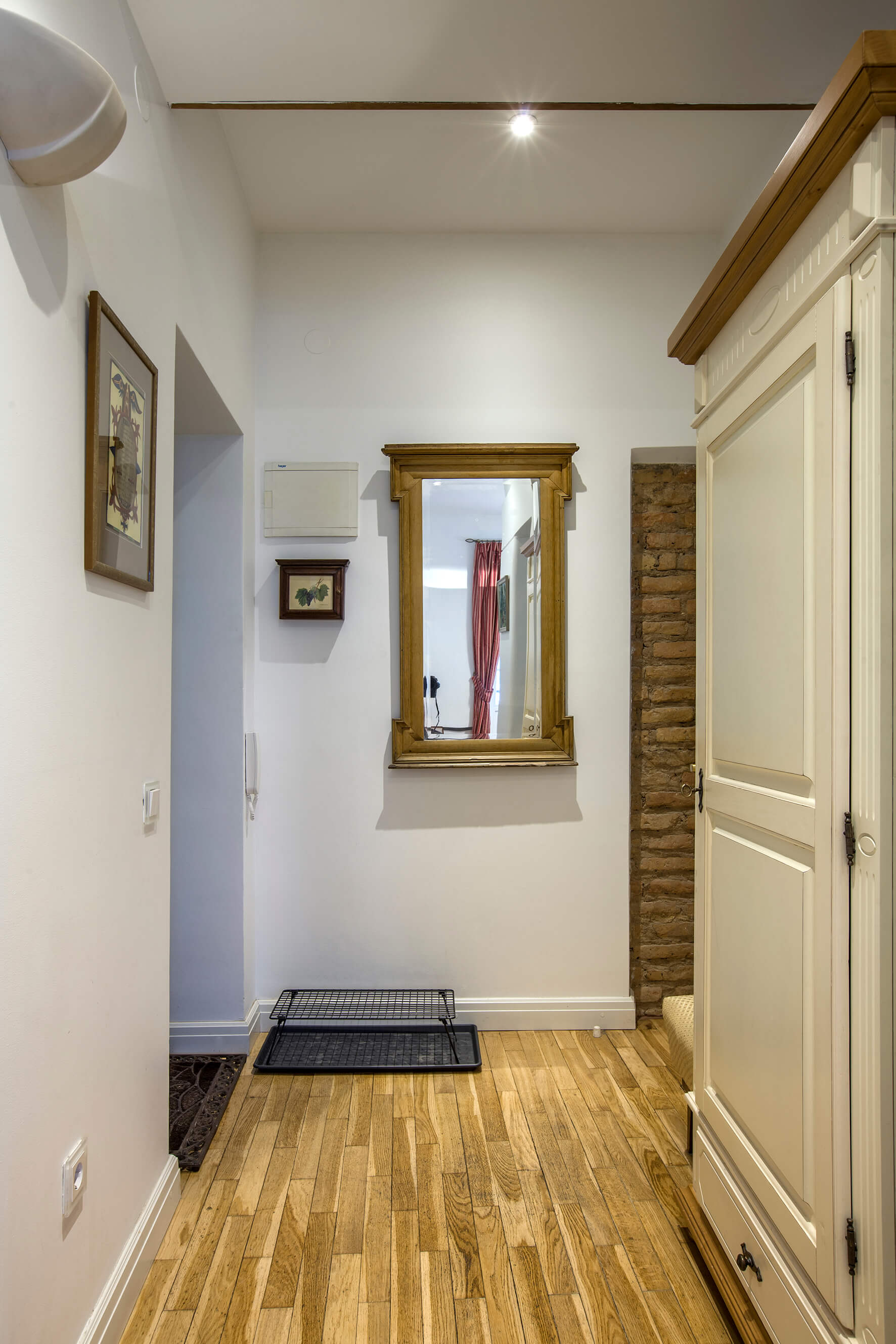 Kai galiausiai jis vis dėlto tapo L. Bytautaitės ir D. Rimkevičiaus nuosavybe, naujakuriams neprireikė imtis jokių esminių permainų. Patogiai erdves buvo suplanavęs prieš tai čia gyvenęs britas (apie šį būsto etapą primena koridoriuje esanti raktinė, priklausiusi ankstesniam savininkui). O autentiškas kokybiškas grindų parketas ir šiandien atrodo puikiai. Teliko malonioji įsikūrimo dalis – užpildyti namus baldais, meno kūriniais ir interjero aksesuarais.