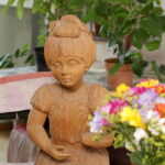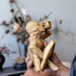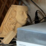 „Tai turėjo būti mergaitė, kuri sėdėtų ant suoliuko ir prie jos vaikai galėtų fotografuotis. Teatras davė ąžuolo, o man liko kojos galas ir rankytė, bet negaliu niekaip pabaigti“, – atsidūsta drožėjas.