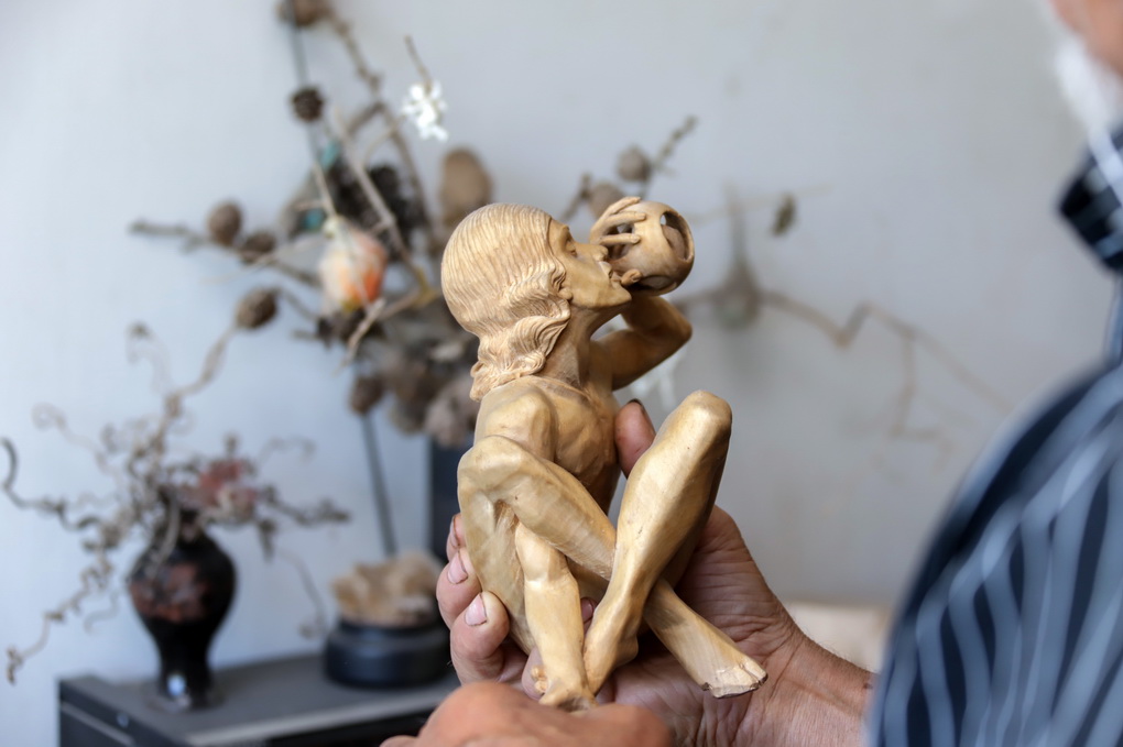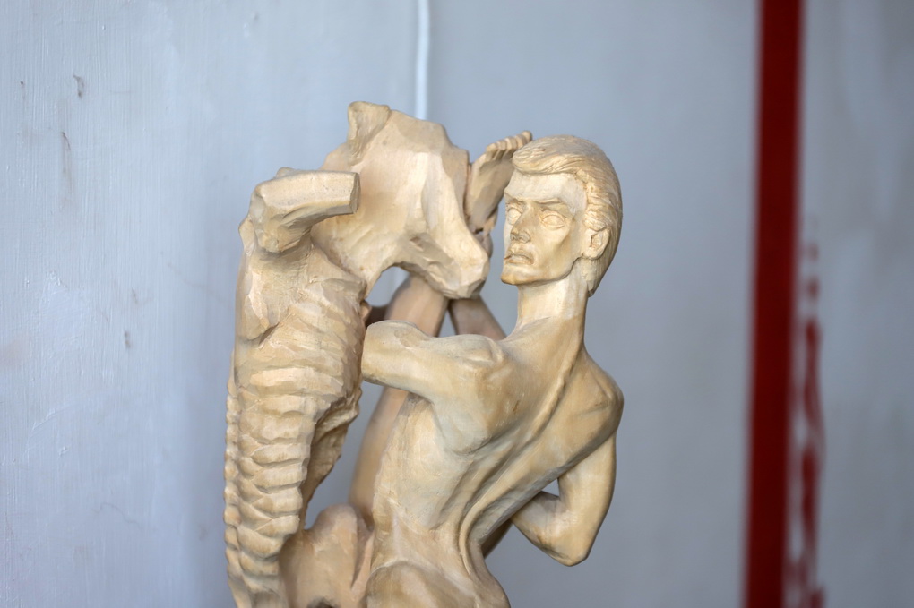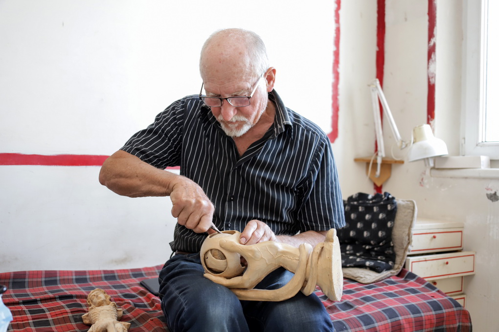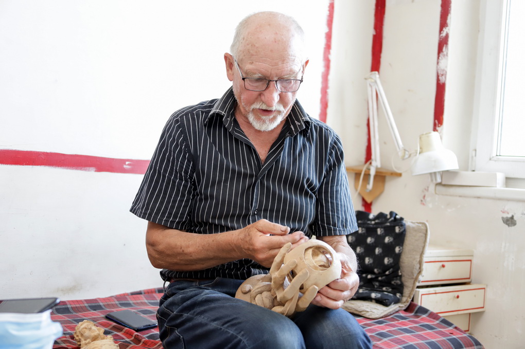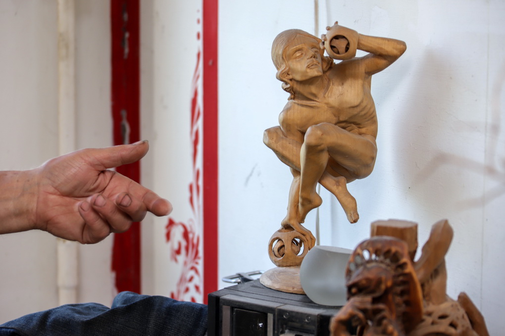 Medį drožti aktorius išmoko savarankiškai. Iš minkšto medžio, pušies, atraižų, anot jo, nebuvo sunku išpjaustyti paprastą laivelį ar batelį.