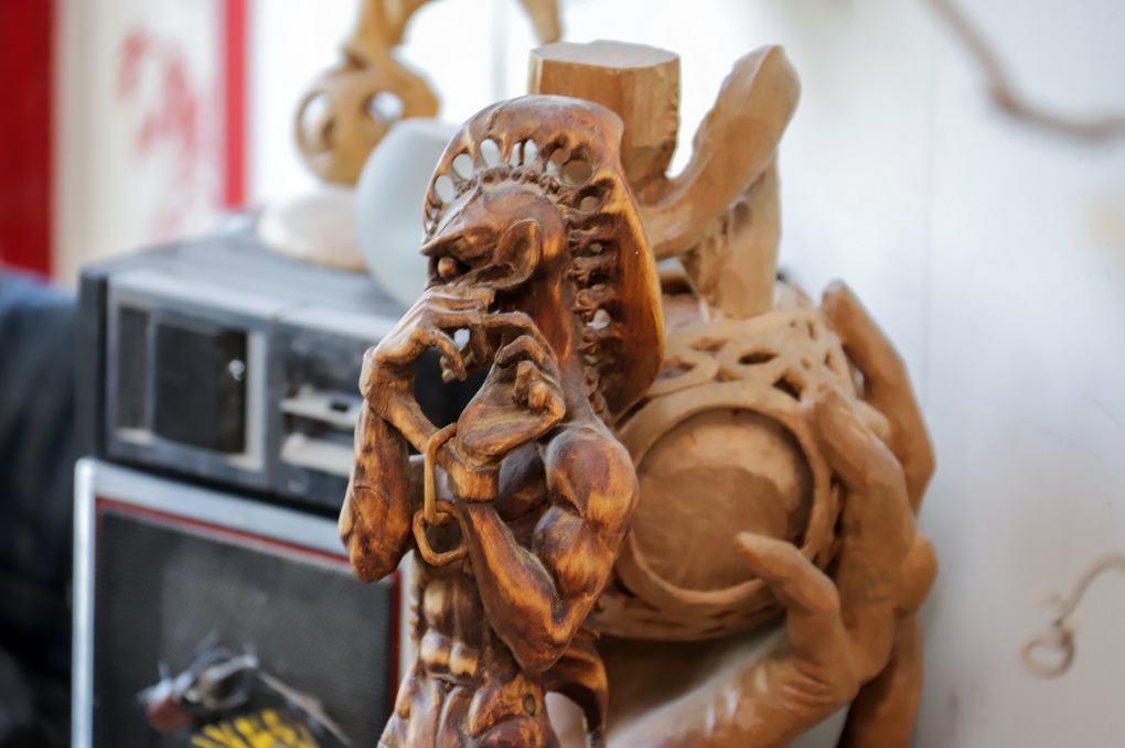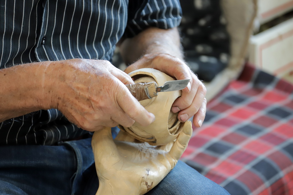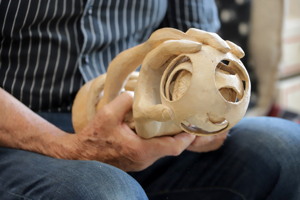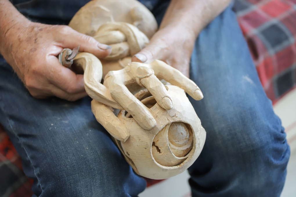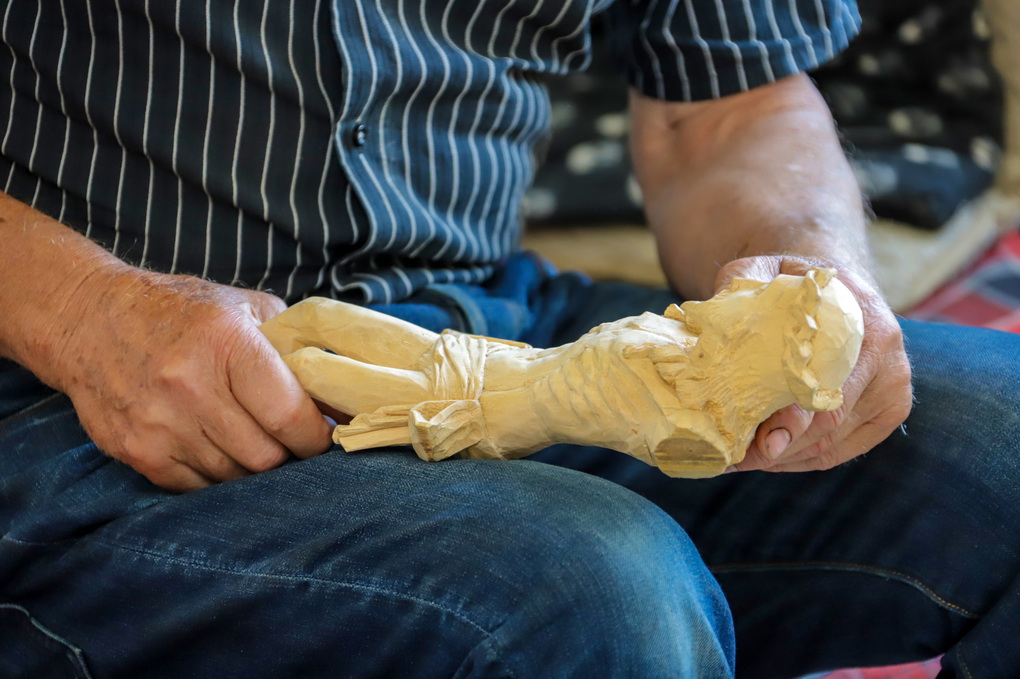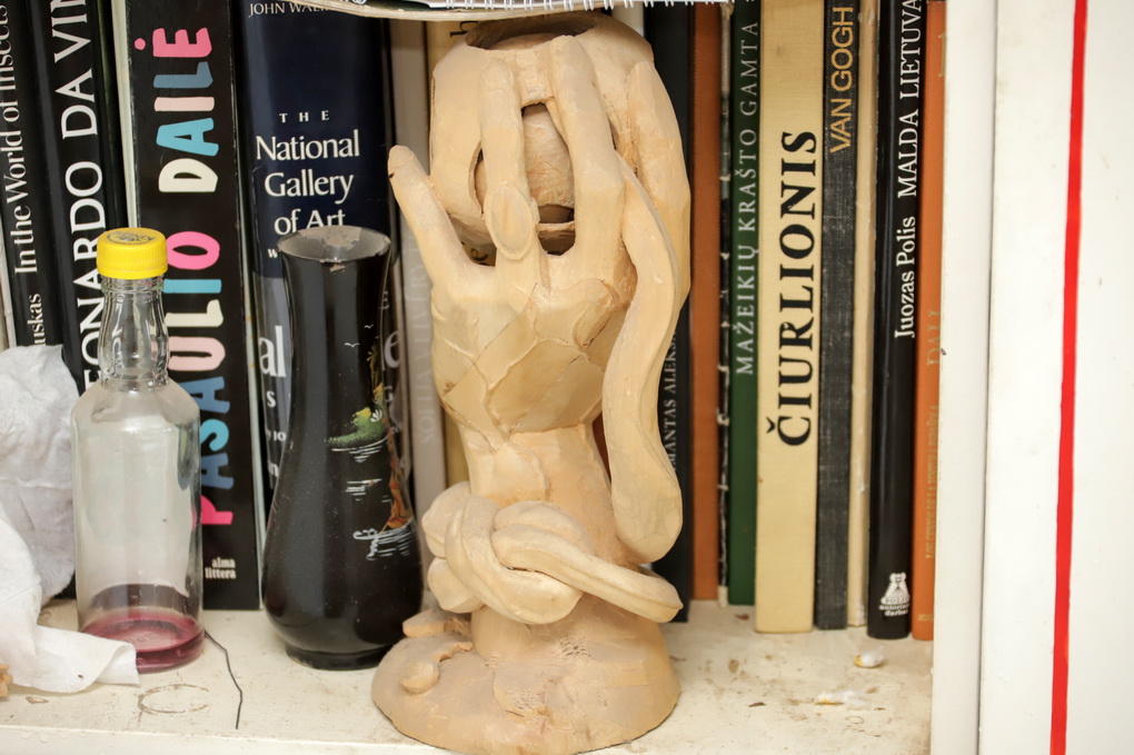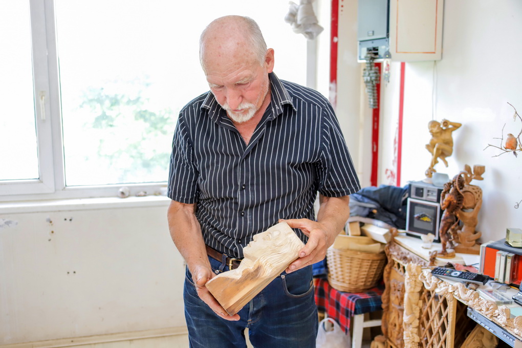 „Ir akys jau nebe taip mato, o akiniai erzina. Anksčiau drožti noro būdavo tikrai daugiau“, – sako rečiau į rankas peiliuką bepaimantis, bet dėl to per daug nesigailintis panevėžietis.