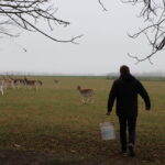 „Prieš dvi savaites sulaukiau ir policijos skambučio, kad netoli mūsų aptvaro laksto du danieliai. Dar vasarą patelė su jaunikliu perbėgo judrų kelią, o sugrįžti bijo. Buvo ir taip, kad viena patelė buvo pabėgusi visus metus, bet gamta taip šaukė, kad vieną dieną radau aptvare. Neįsivaizduoju, kaip įlindo atgal“, – pasakojo A. Juškys.