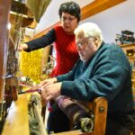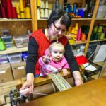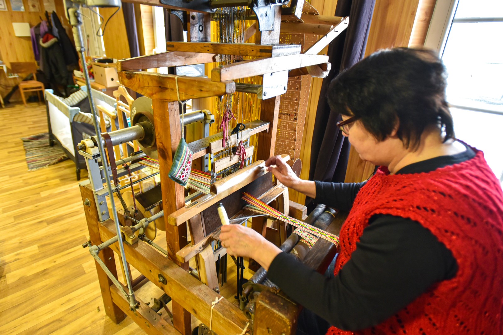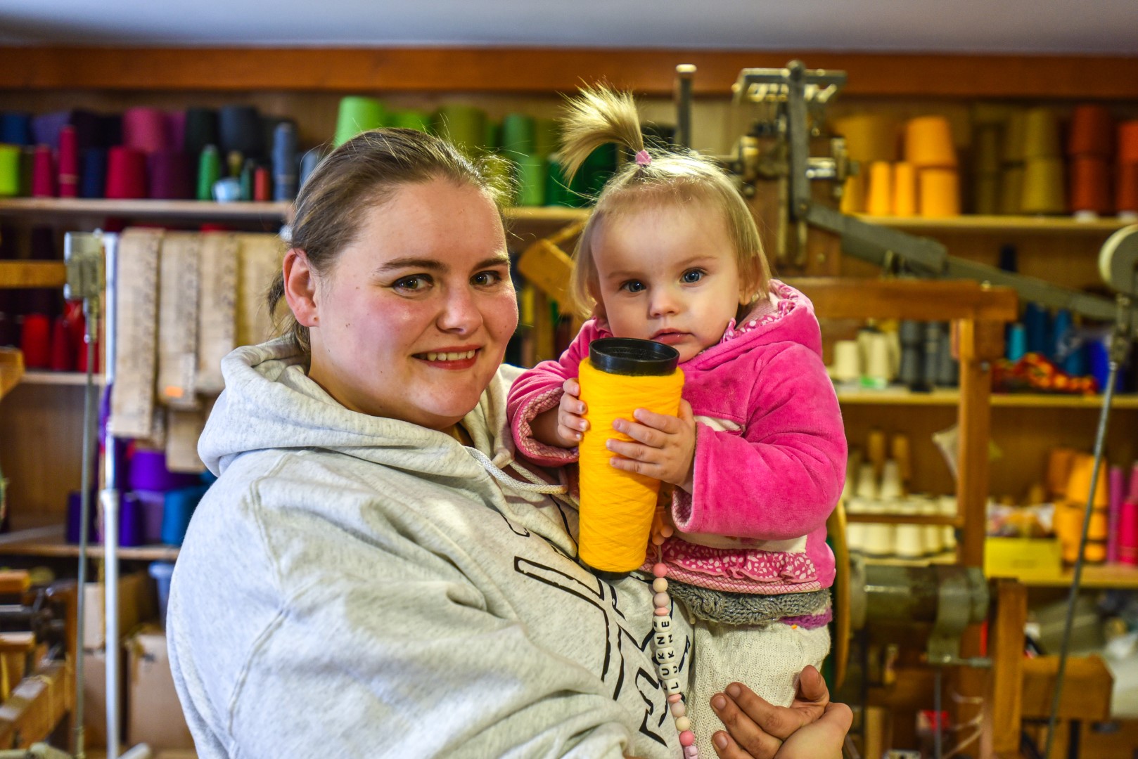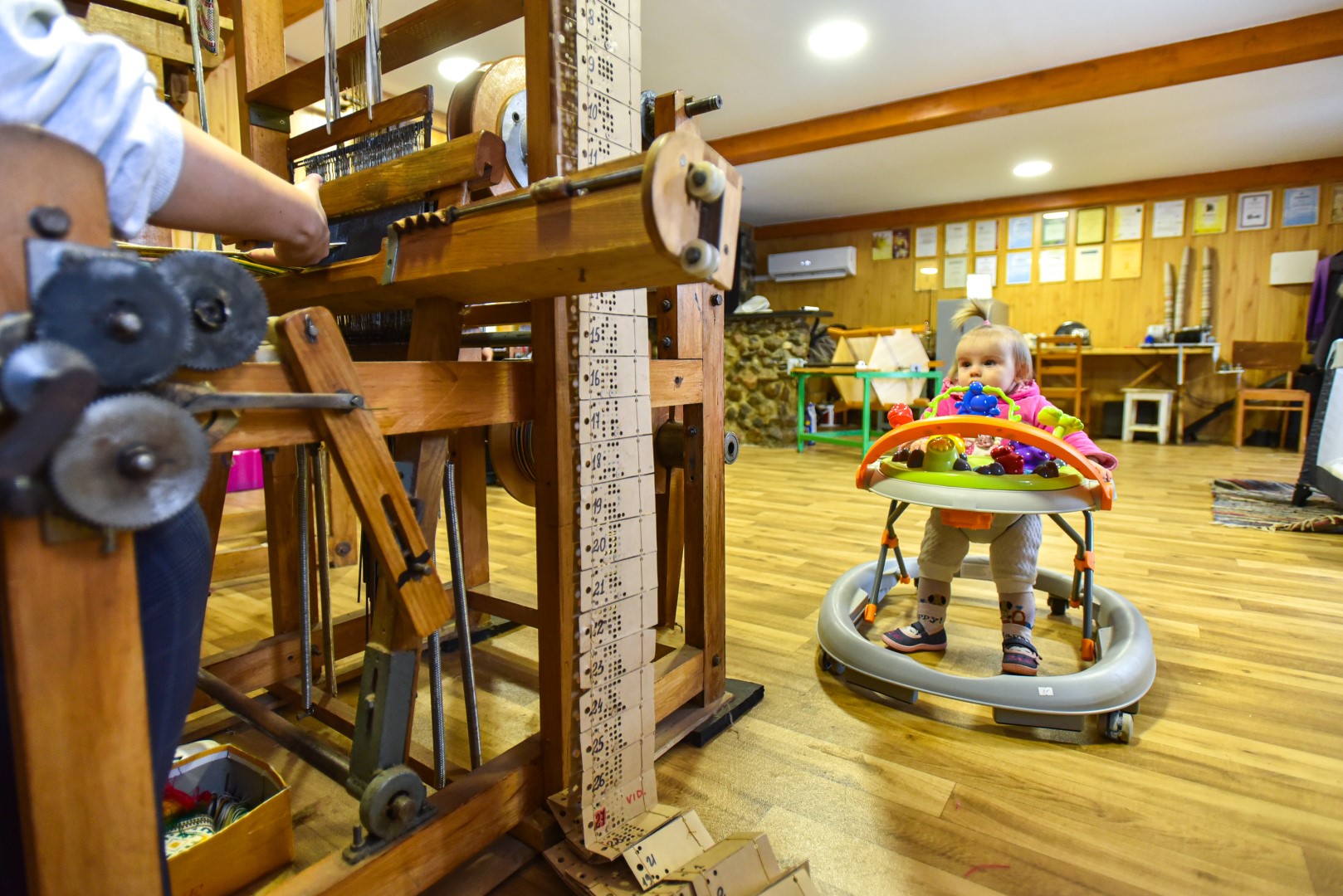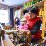 Kol mažoji anūkėlė Luknė dar tik apžiūrinėja, kas čia tas kasdien dundantis daiktas, dar tik stebi spalvingų siūlų judėjimą, vienomis staklėmis audžia pati Violeta, kitomis – jos vyras Algirdas Salikas, trečiomis – jų dukra Urtė Salikaitė-Pranckūnienė, Luknės mama.
