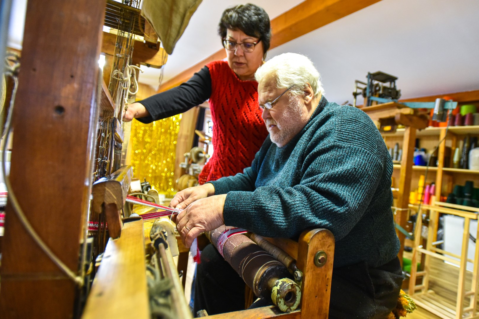 Vyrui Algirdui dažnai tenka darbuotis su siūlais – ilgas, kartais nuobodus tai darbas, bet be jo, taip pat be kruopštaus staklių paruošimo, jų užtaisymo iki audimo neprieisi.