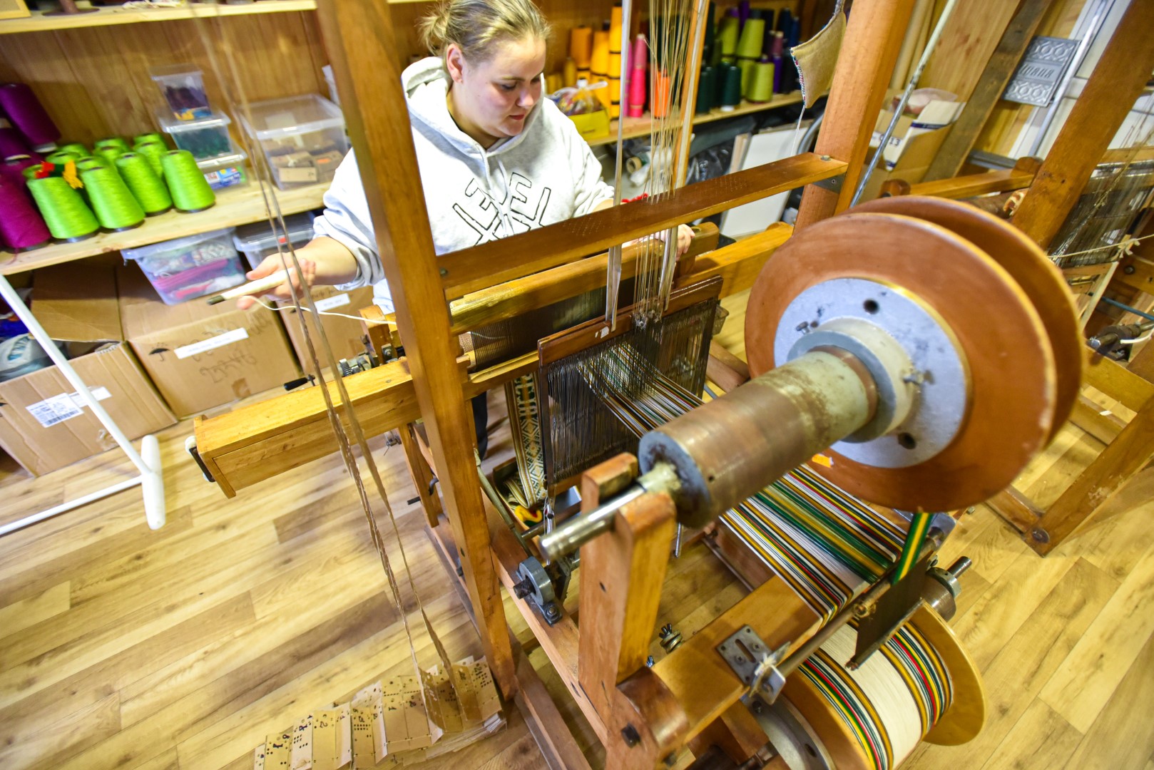 „Septyniasdešimt procentų audėjo darbo sudaro pasiruošimas momentui, kai jau galėsi sėsti ir pradėti austi“, – sako V. Valentonytė.