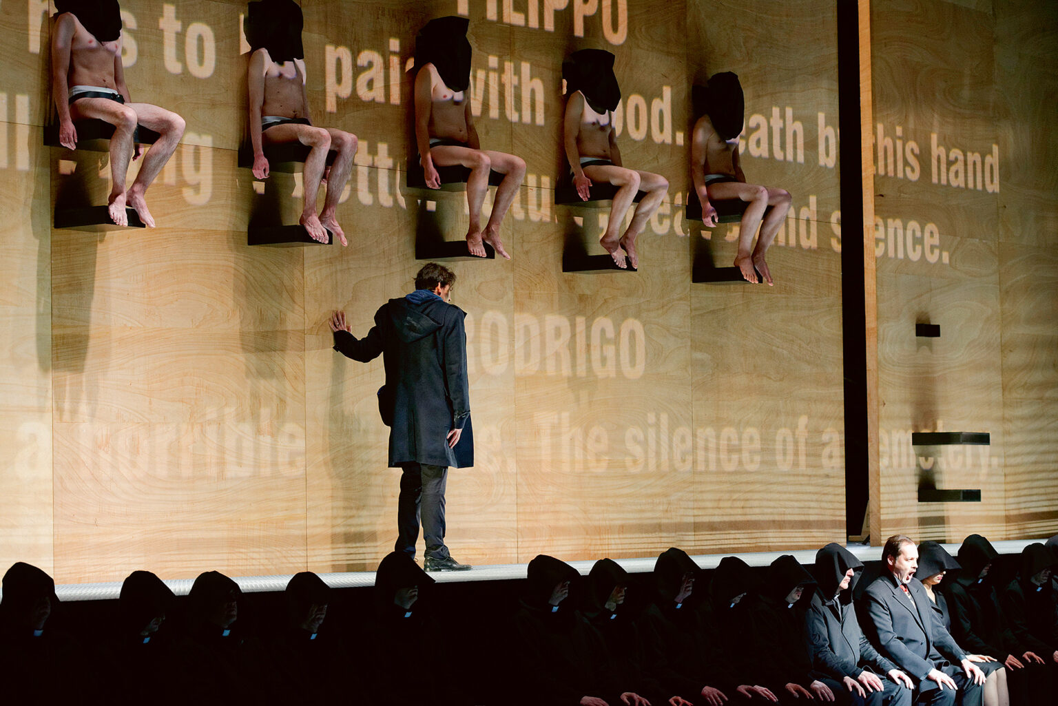 Galinė Lietuvos nacionalinio operos ir baleto teatro scena pastūmėta gerokai arčiau žiūrovų. Todėl „nepastebėti“ neįmanoma ne tik pagrindinio herojaus likimo posūkių, bet ir vienos kertinių spektaklio scenų – ant strypų sėdinčių pusnuogių eretikų, kuriuos mirti siunčia ispanų inkvizicija. Autodafė valandos laukiantys pasmerktieji su maišais ant galvų publikai siunčia savąją „Blackstar“ – priešmirtinio atsisveikinimo žinutę.