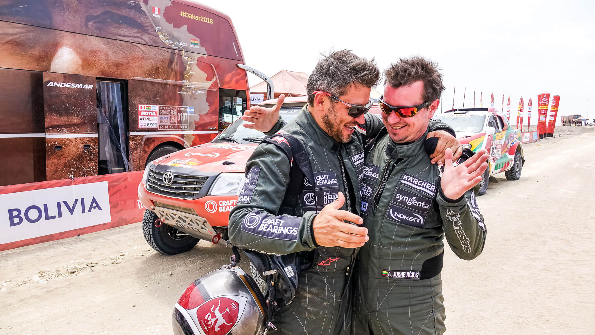 2018 m. sausio 6–20 d. Peru, Bolivijos ir Argentinos teritorijose vykusiose Dakaro lenktynėse Antano Juknevičiaus ir šturmano Dariaus Vaičiulio ekipažas pasiekė naują Lietuvos ir Baltijos šalių rekordą – finišavo 12-oje vietoje. Pirmą kartą šių lenktynių finišą pasiekę Vaidotas Žala ir šturmanas Saulius Jurgelėnas iškart įšoko į dvidešimtuką – užėmė 18 vietą. Benedikto Vanago ir Sebastiano Rozwadowskio ekipažui atiteko 30 vieta. Motociklininkas Balys Bardauskas pasiekė finišą 81-as ir džiaugėsi pakartojęs Lietuvos rekordą.