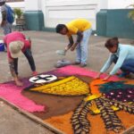 Ne mažiau įspūdinga ir turistus viliojanti pramoga – raštais išmargintų kilimų, gaminamų iš gėlių žiedlapių, spalvotų miltelių ar pjuvenų, klojimas. Kiekvieno universiteto, ministerijos ar privačios įmonės garbės reikalas – puošimui gauti lopinėlį gatvės. Ankstyvą rytą į paskirtą gatvę susirinkę atranką praėję kilimų kūrėjai kruopščiai margina raštus pagal sukurtą ir patvirtintą trafaretą. Kai po kelių valandų kilimai būna baigti, visa gatvė pasipuošia Jėzaus bei Marijos atvaizdais, paskutinės vakarienės, nukryžiavimo ar prisikėlimo scenomis, o kartais tiesiog gamtos vaizdais – papūgomis, drugeliais ar kalnų imitacijomis. Kai kuriuose kilimuose po nukryžiuoto Kristaus atvaizdu puikuojasi ir paveikslą sukūrusios institucijos pavaidinimas – pavyzdžiui, „Švietimo ministerija“ ar „Elektros ūkis“. Tiesa, šių įspūdingų dekoracijų grožėjimuisi lieka tik valanda ar kelios – vakare taku žygiuojanti procesijos minia viską sutrypia. Po procesijos praėjimo gatvės sutvarkomos ir paruošiamos kitos dienos kilimų klojimui.