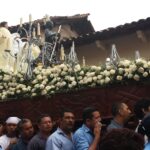 Pasak Ž. Lukšytės, svarbiausias akcentas, be kurio „Semana Santa“ apeigų neįsivaizduoja nei vietiniai, nei turistai – religinės procesijos. Šimtai žmonių lėtai eina gatvėmis, nešini vynuogėmis, bananais ar kukurūzais papuoštomis Jėzaus, juodosios Marijos ir kitų šventųjų skulptūromis, vaizduojančiomis paskutinę Kristaus kelionę ir nukryžiavimo scenas. Šios statulos, įtaisytos ant specialių platformų, stebina ne tik savo dydžiu, bet ir įspūdingu svoriu, galinčiu siekti net ir 3 tonas. Platformas nešantys procesijos dalyviai kai kuriose Lotynų Amerikos šalyse vilki specialų purpurinį apdarą – tikima, kad būtent tokios spalvos apsiaustu nukryžiavimo dieną vilkėjo Jėzus.