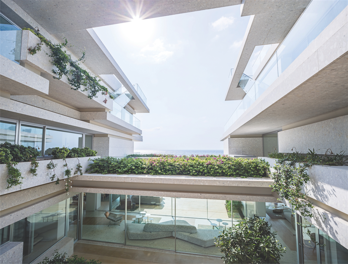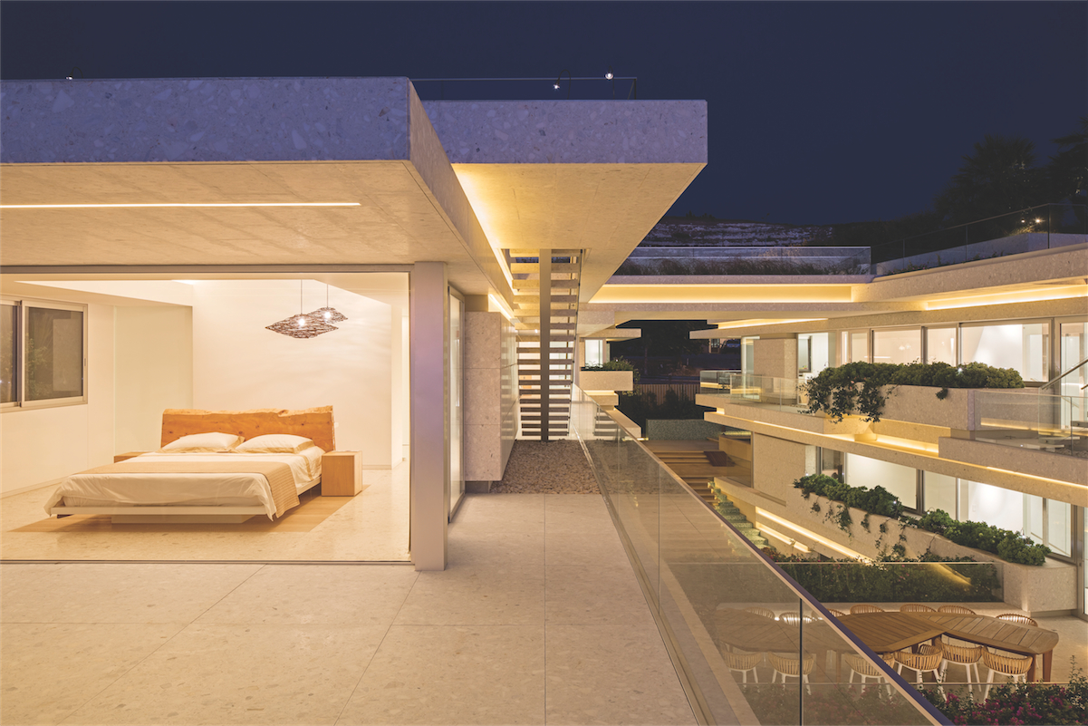 2000 kvadratinių metrų ploto vilos komplekso dizainas jungia saulę, jūros vėją ir pakrantės uolas į elegantišką, draugišką ir šiltą visumą. Tačiau pagrindinis dėmesio centras čia vis dėlto yra Viduržemio jūra. Klientams itin svarbus vietovės bruožas – atviri horizontai – turėjo būti atspindėtas ir pastato architektūroje. Pasirinkta atviro plano struktūra, daugelis patalpų maksimaliai išnaudoja apylinkių vaizdus.