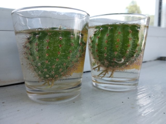 Tai gana paprasta: kaktusas atsargiai išimamas iš dirvos, kurioje augo, ir parai paliekamas, kad šaknys nudžiūtų. Tada trumpam panardinamas į labai silpną kalio permanganato tirpalą, o vėliau perkeliamas į nepermatomą indą su maitinamuoju tirpalu ir įtaisomas taip, kad jame mirktų maždaug trečdalis šaknies dalies – tai reikalinga jos aeracijai.