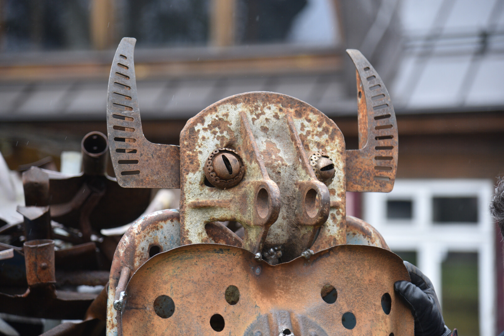Ramygalai panevėžietis sukonstravo ožką – šio miestelio simbolį: pilvui tiko sena vonelė, snukeliui – kibiras, o ausims – metalinės pėdos.