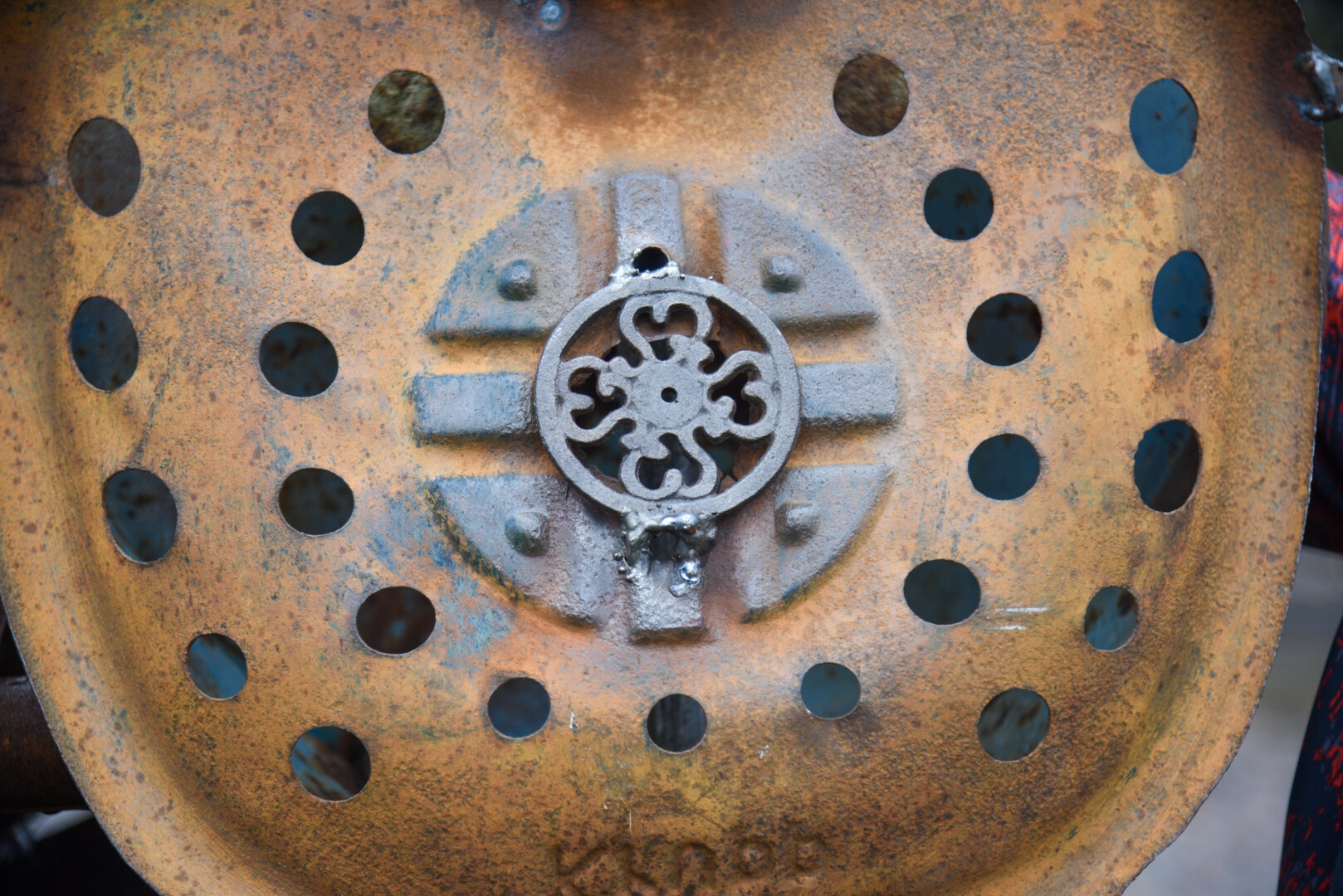 Mat iš įvairiausių metalinių detalių ar buityje nebenaudojamų senų rakandų sukonstruotas mėšlavabalis, ridenantis didžiulį rutulį, surištą iš galybės metalinių kastuvų, gali būti aiškinamas dvejopai.