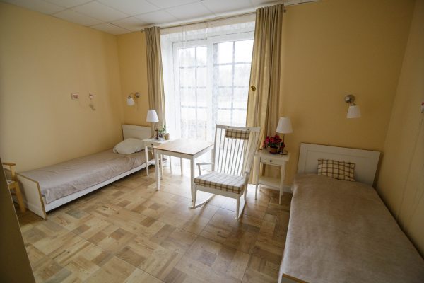 Gyvenamosios patalpos nė iš tolo neprimena ligoninės palatų – visur be galo jauku, žaisminga ir spalvinga. Iš kambario, atvėrus žemę siekiančius langus, galima išeiti į kiemelį. Tiesa, iš daugelio kambarių jau patenkama tik į uždaras terasas, mat pasitaikydavo atvejų, kai močiutės sugalvodavo išeiti pasivaikščioti neprižiūrimos.