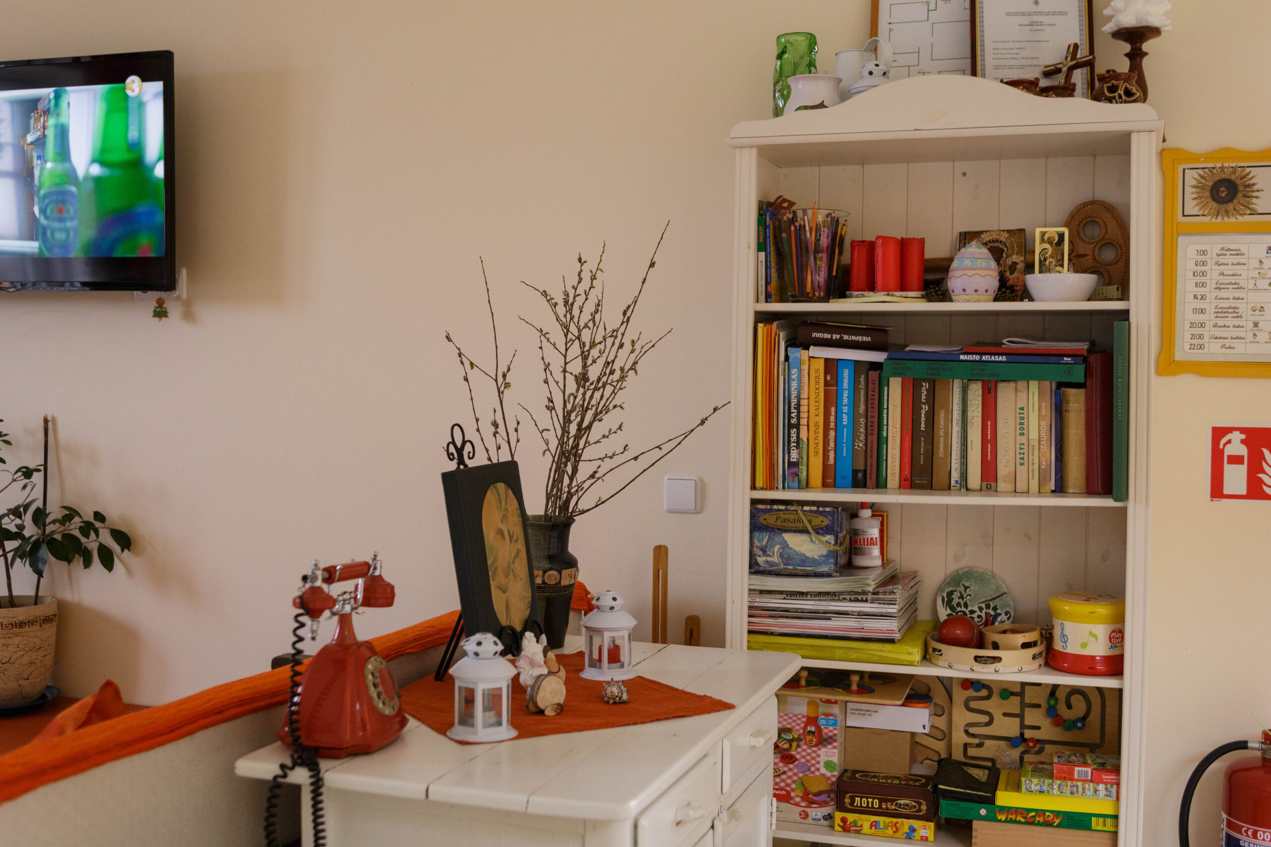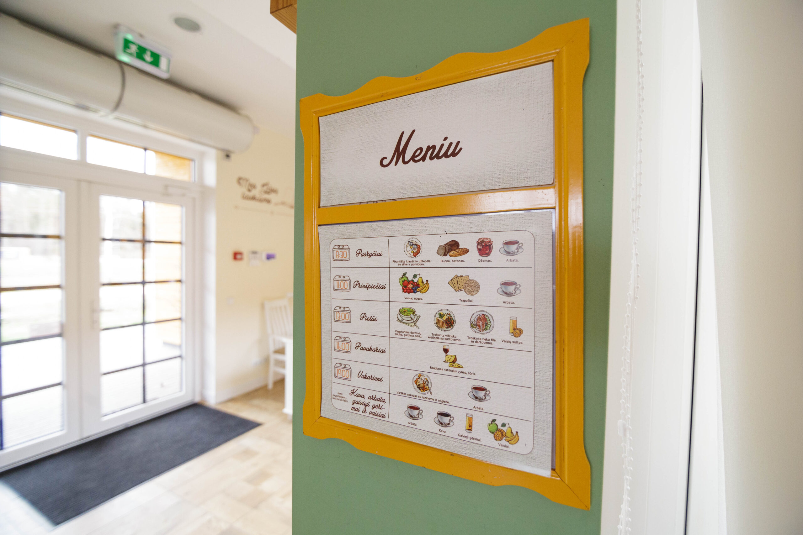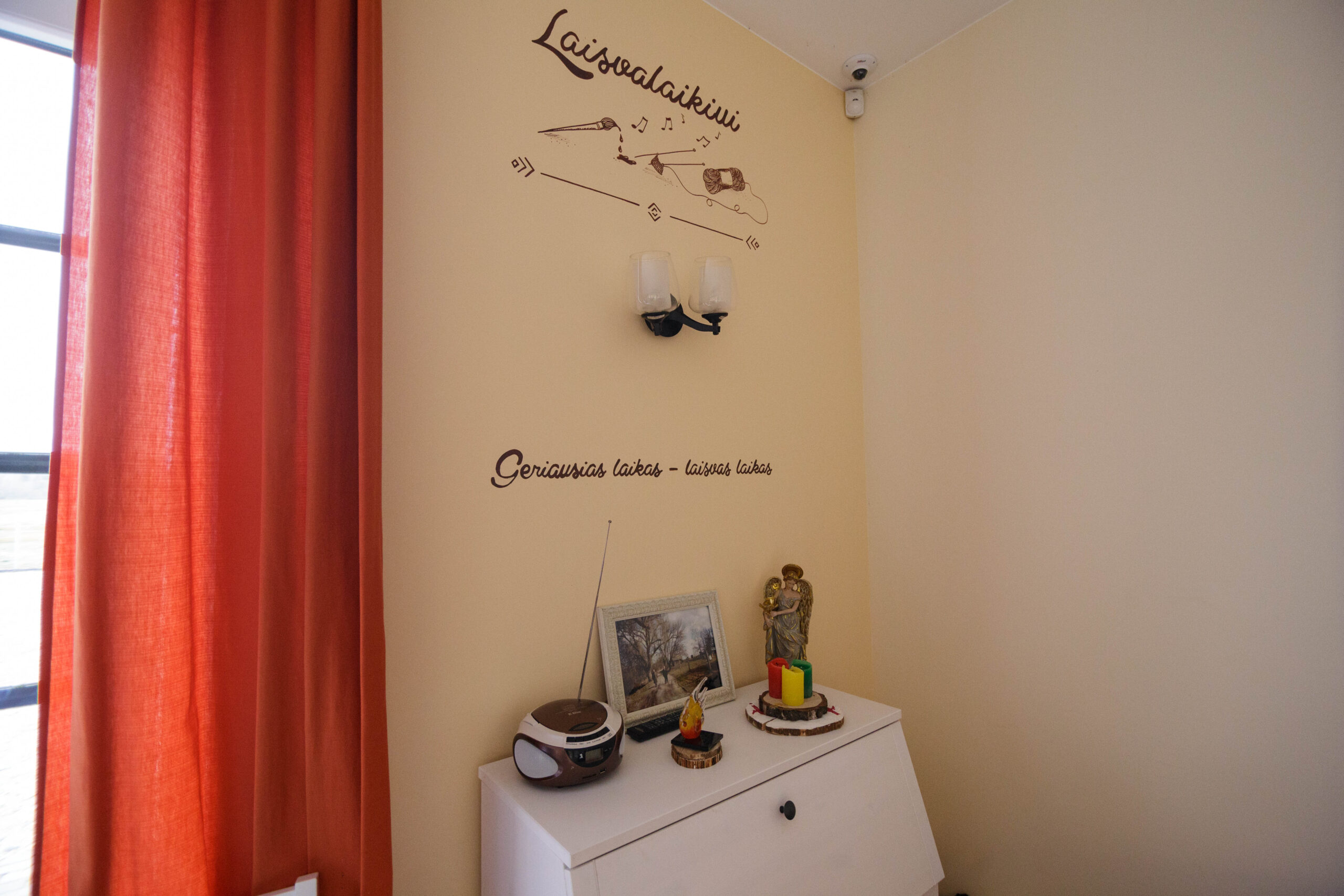 Jaukiuose ir šviesiuose grupinio gyvenimo namuose į akis krenta ir tai, kad visos erdvės, net baldai ar kitos detalės sužymėtos, aiškiai atskirtos užrašais, ryškesnėmis spalvomis ar permatomais baldais. Net kambariai turi savo pavadinimus ar tematiką, pavyzdžiui, aguonų, jūros, lubinų, snieguolių, grybų ir kt.
