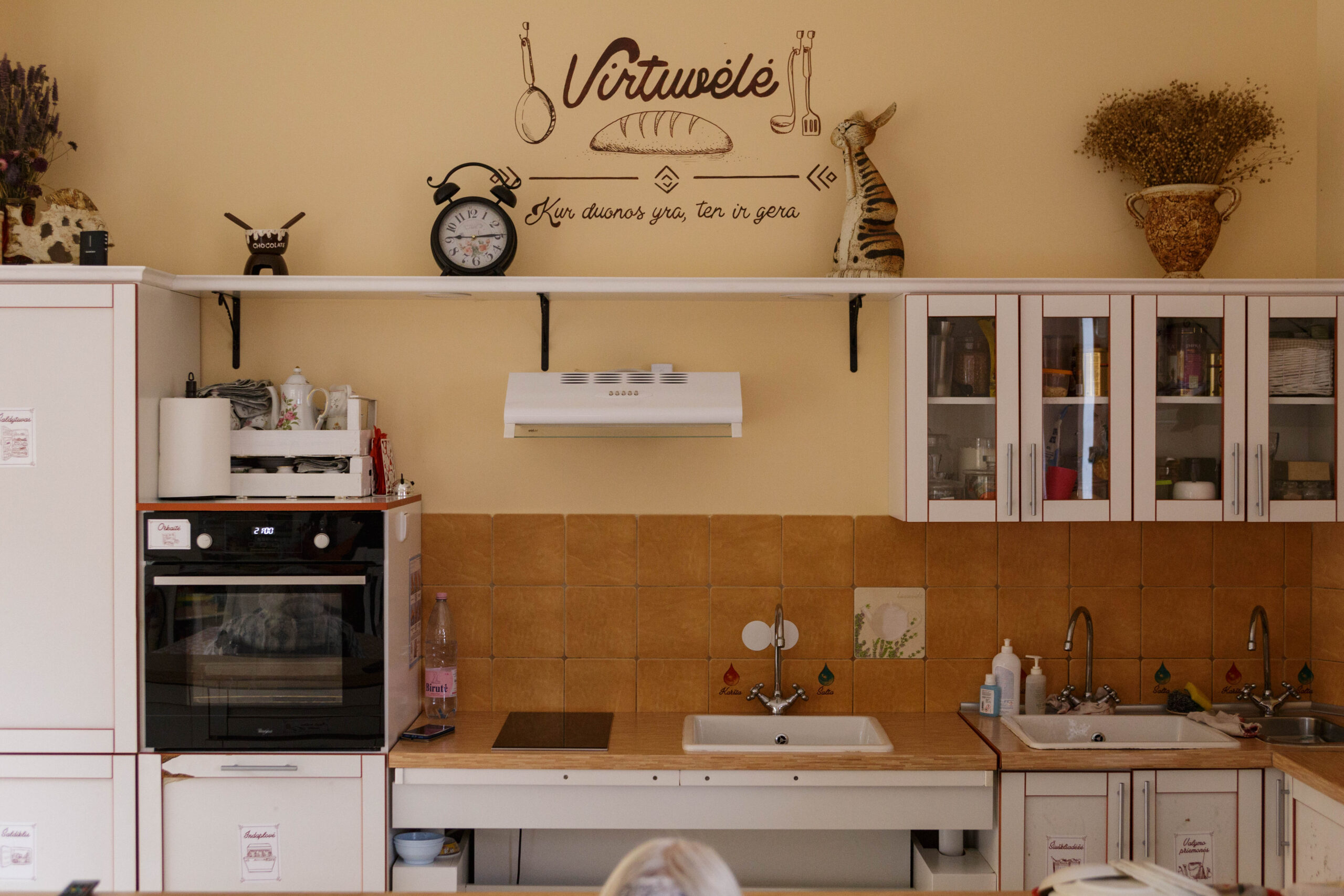 Kiekviename kambaryje yra net po supamąjį krėslą – kad gyventojos galėtų atsipalaiduoti ir nurimti. Namų jaukumą kuria kaip tikruose namuose čia gyvenantys keturkojai: viename kambarių ant lovos tingiai snūduriuoja trijų spalvų murklė Katrytė, po kiemą zylioja mišrūnas Rakaliukas, lojimu pasveikinantis kiekvieną atvykusįjį. Nors jam vidiniame kieme įrengta prašmatni dviejų kambarių būda, labiau primenanti rezidenciją, šuneliui mieliau sukiotis tarp žmonių. Tad šuns namelyje glaudžiasi dar vienas rusvas katinas.
