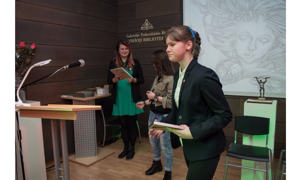 Už netradicinius eilėraščius laurų vainiku pasipuošusi dvyliktokė Kotryna pripažino, kad planuoja studijuoti filosofiją, tačiau, pasak jos, kūryba visuomet eina šalia.