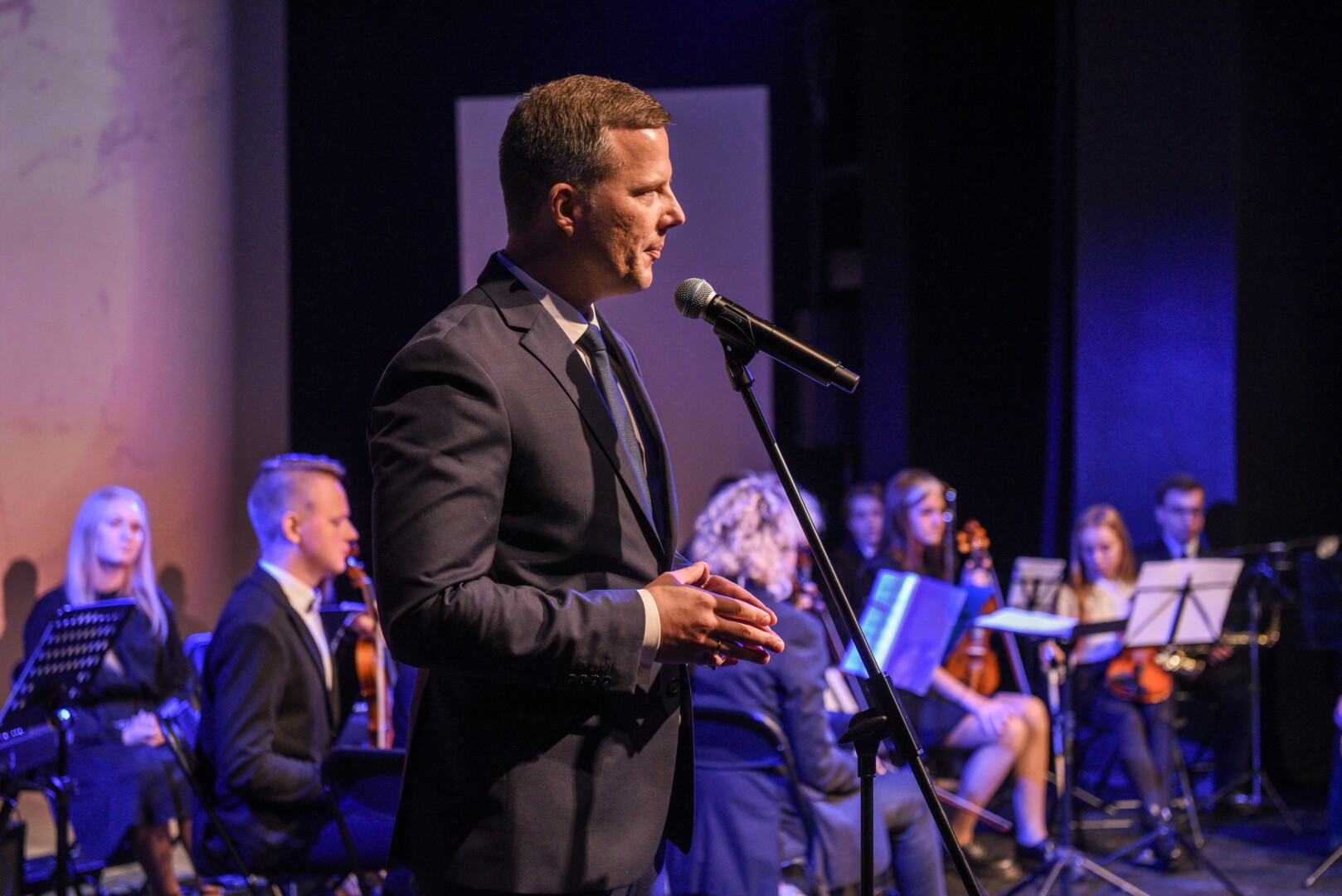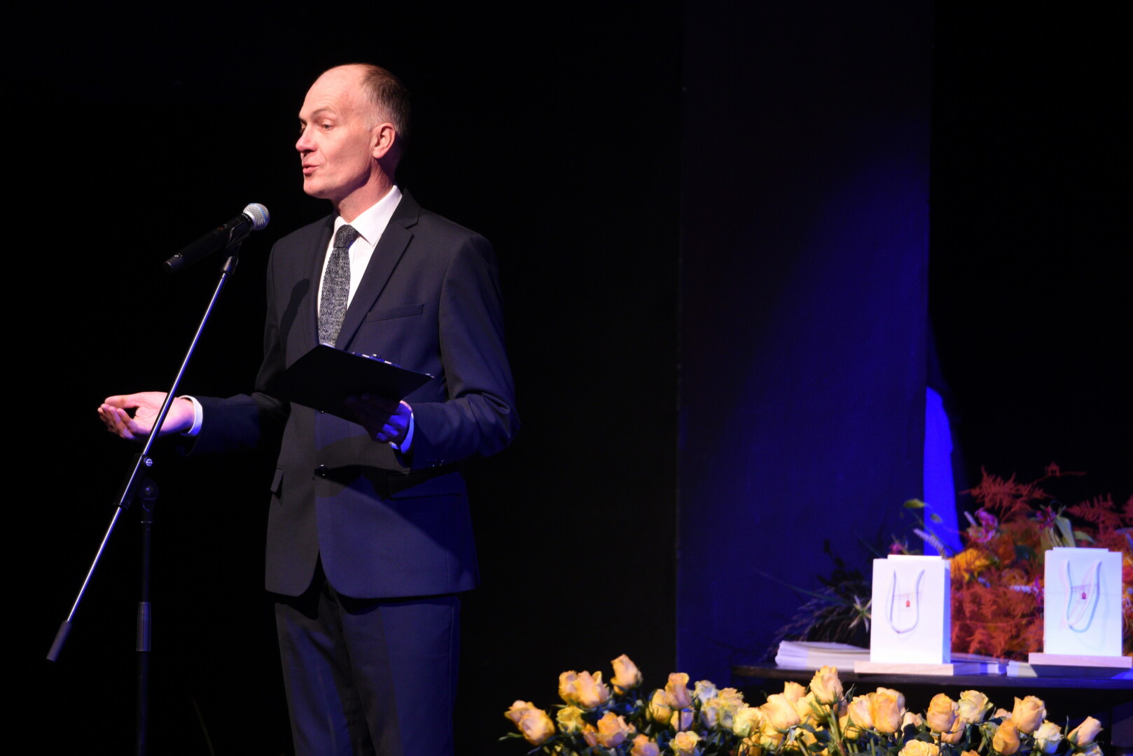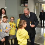 „Metuose yra diena, kai, nežiūrint koks už lango oras, mūsų mokyklose visada jauku, šviesu ir šilta. Nes šiandien savo gerbiamus ir mylimus mokytojus sveikina bei dėmesiu ir šypsenomis apdovanoja jų mokiniai. Tad dėkodamas už malonų pakvietimą ir galimybę būti čia, norėčiau prisidėti prie šiandien jums jau skambėjusių sveikinimų. Linkiu, kad pagarba Mokytojui ir abipusis gerumas būtų jūsų darbo kasdienybė. Linkiu kantrybės ir džiaugsmo mokant ir mokantis drauge su vaikais. Už Jūsų darbą, už prisiimtą atsakomybę ir dideles širdis – ačiū Jums“, – sveikinimo kalbą sakė Panevėžio miesto meras Rytis Račkauskas.