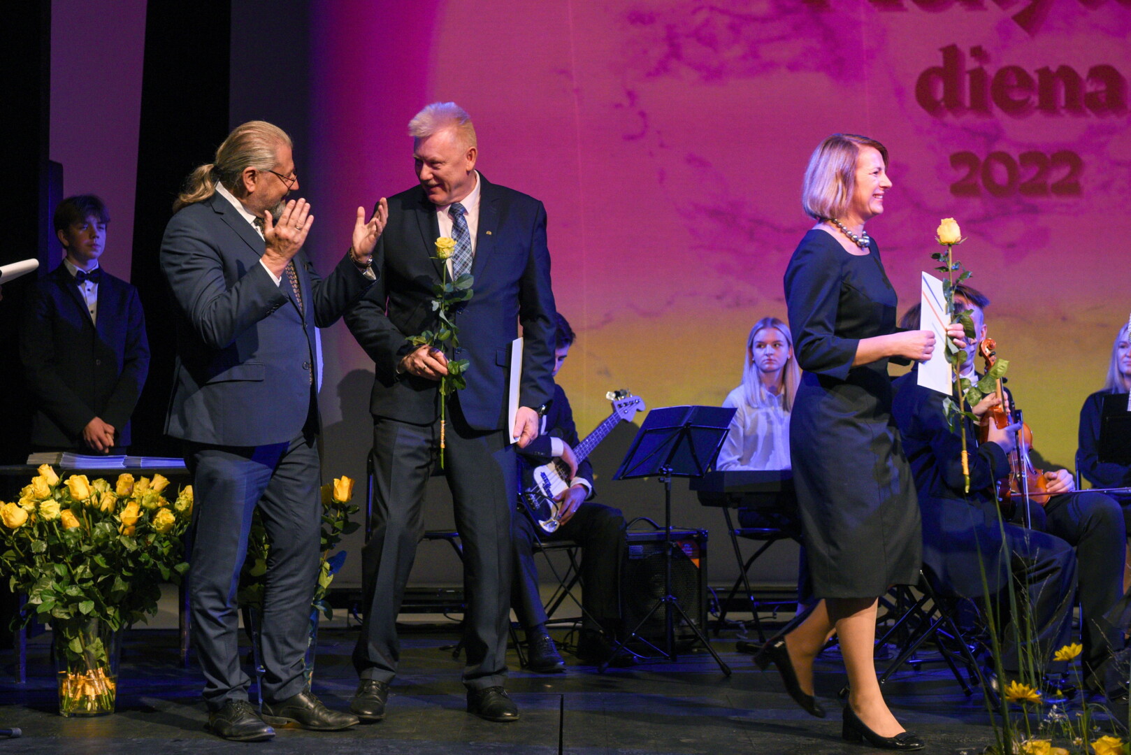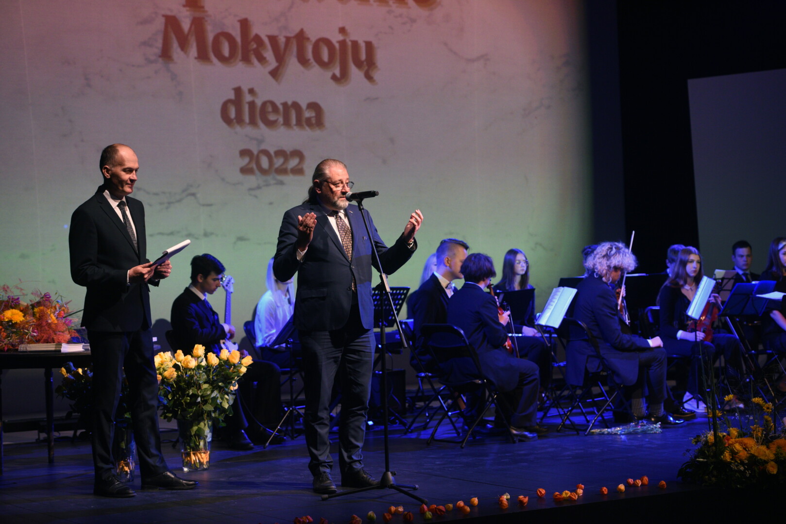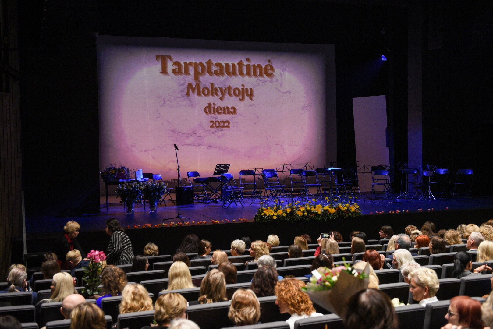 Šiandien Tarptautinės mokytojų dienos proga Juozo Miltinio dramos teatre pasveikinti Panevėžio miesto mokyklų bei ikimokyklinio ugdymo įstaigų pedagogai, vadovai, įteiktos Metų mokytojo premijos.