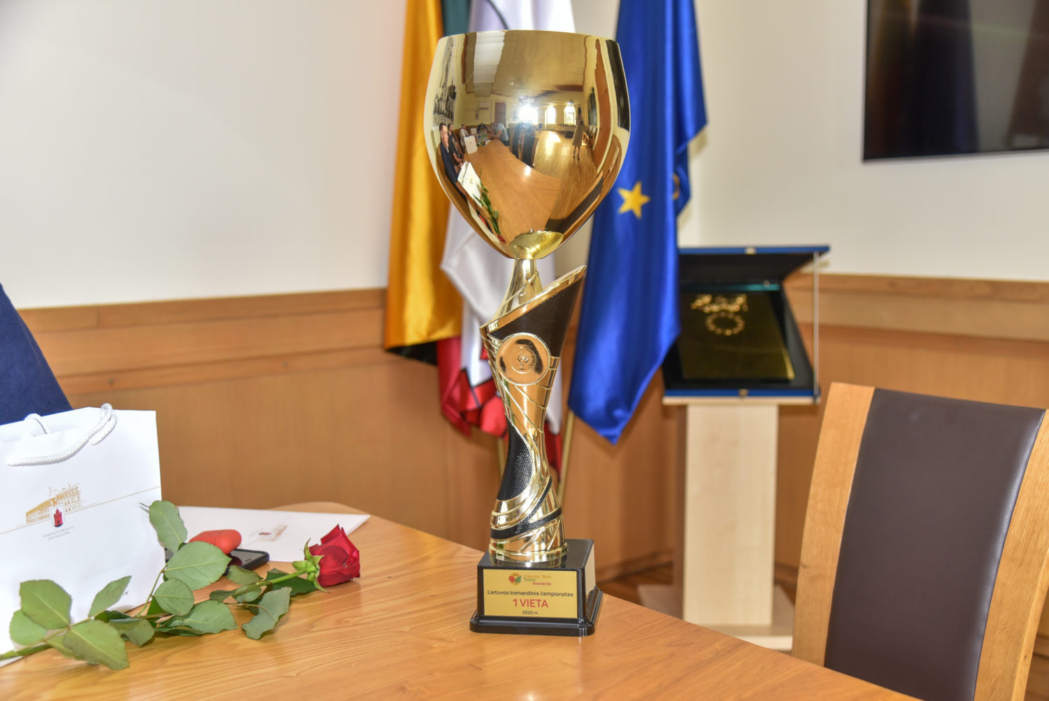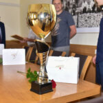 „Montuotojo“ komanda į pagerbimo ceremoniją atsinešė gražuolę taurę, kurią šalies čempionai gavo už pirmąją vietą iš Lietuvos stalo teniso asociacijos.