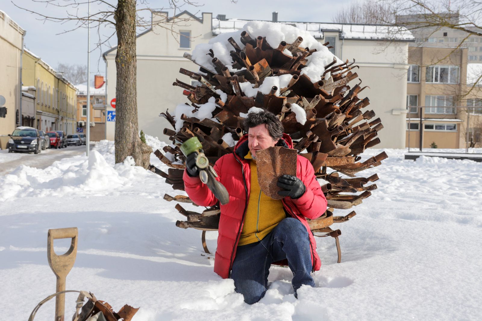 Jo nuomone, pandemija savotiškai suskaldė ir supriešino žmones. Tai puikiai atsispindės ir kuriama meninė instaliacija. Jos viršuje bus įtaisyti kastuvai su stiklėmis akimis ir dujokaukėmis, o pačioje – tik su akimis. Šias dvi grupes skirs spygliuota viela – pasaulio nesusikalbėjimo simbolis.