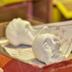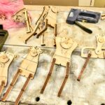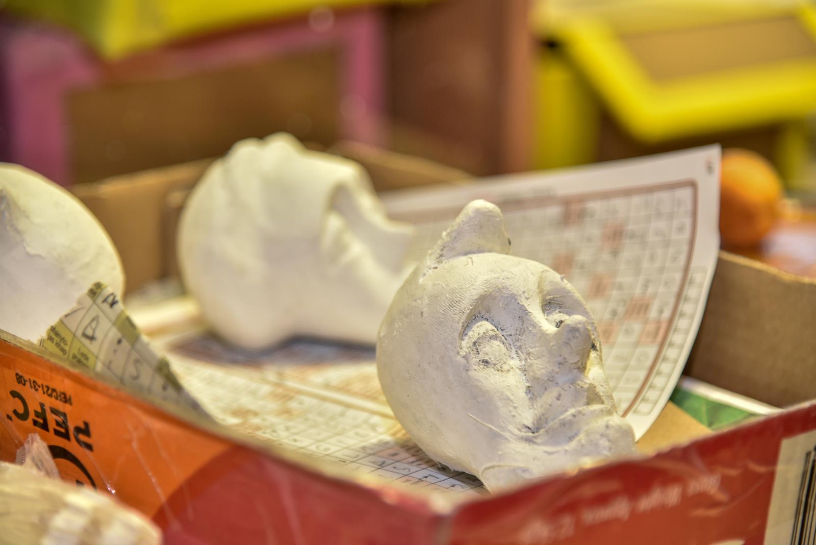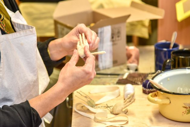 Aleksandras tuo metu dirbina lėlėms galvas – drožia, šlifuoja, dažo, vėl tepa, šveičia…