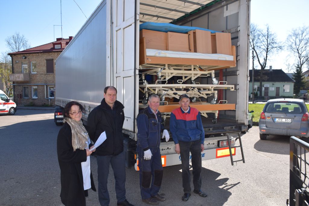 Rėgensburgo atsiųstame krovinyje – 33 hidraulinių lovų, 50 transformuojamų spintelių, 60 čiužinių, 14 vaikštynių. Visus juos naudos Panevėžio ligoninė.