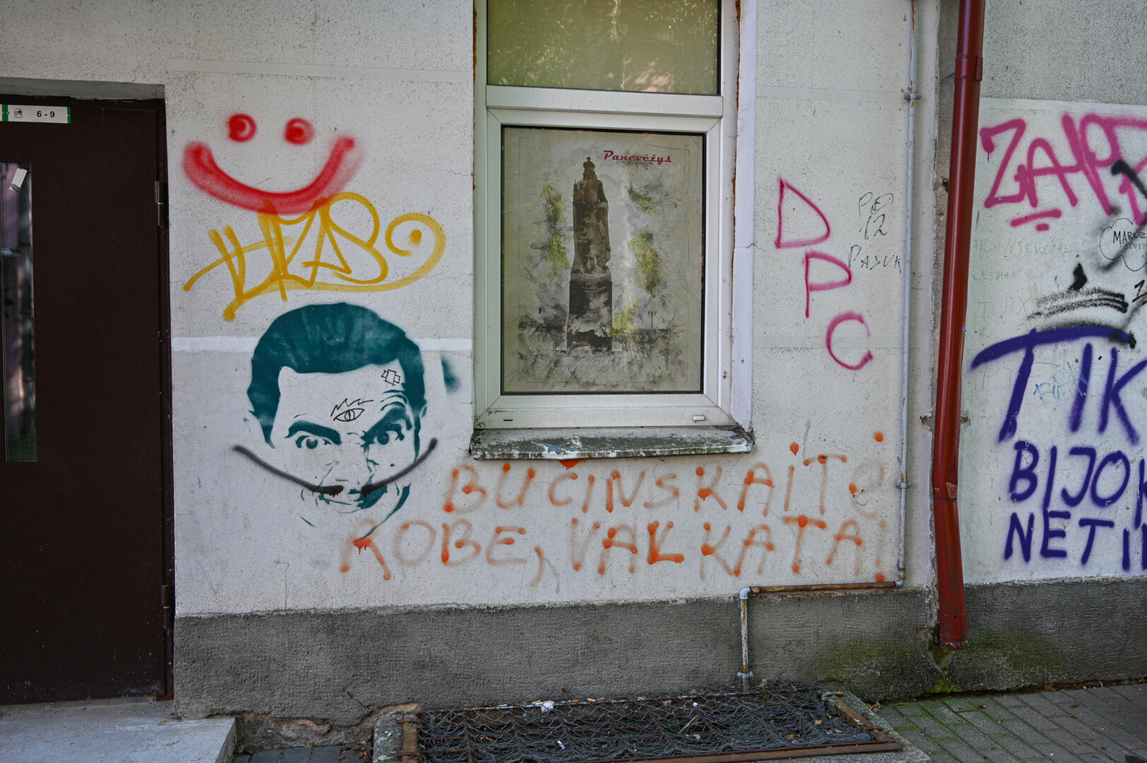 Pačiame centre stūksantis namas jau seniai yra chuliganų taikinys – ko tik ant jo sienų nepamatysi: nuo nesėkmingų kaligrafinių bandymų iki vabzdžių atvaizdų.