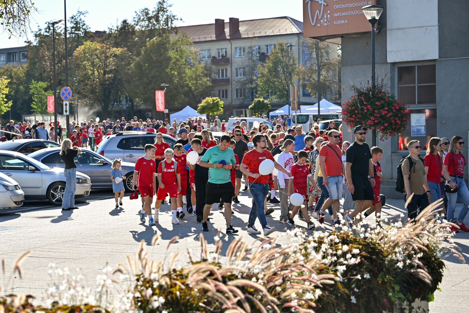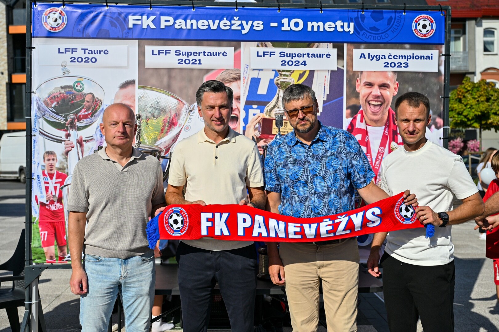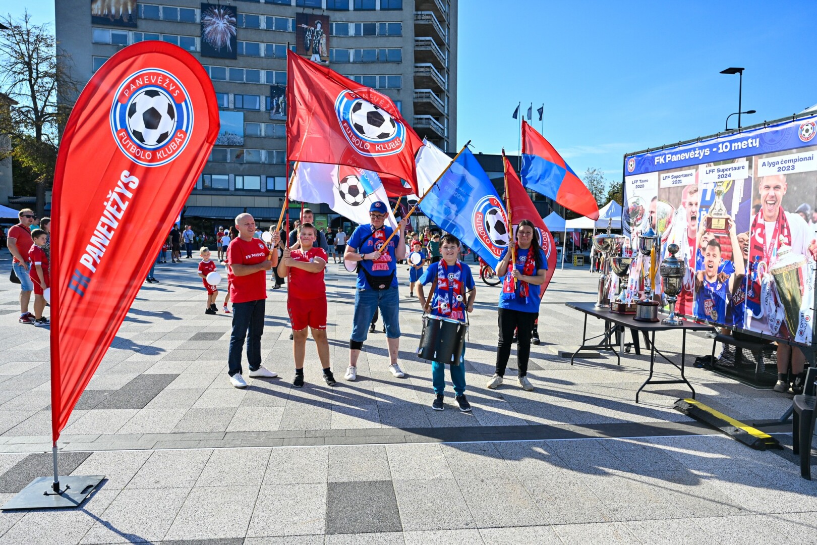 Laisvės aikštė sekmadienio popietę nusidažė raudona ir mėlyna spalvomis – futbolo klubas „Panevėžys“ su panevėžiečiais atšventė 10-ąją gimtadienį.