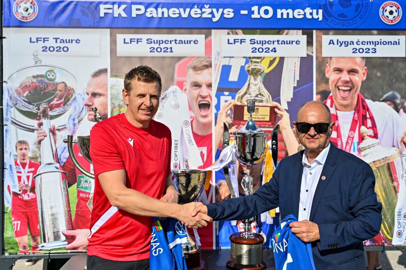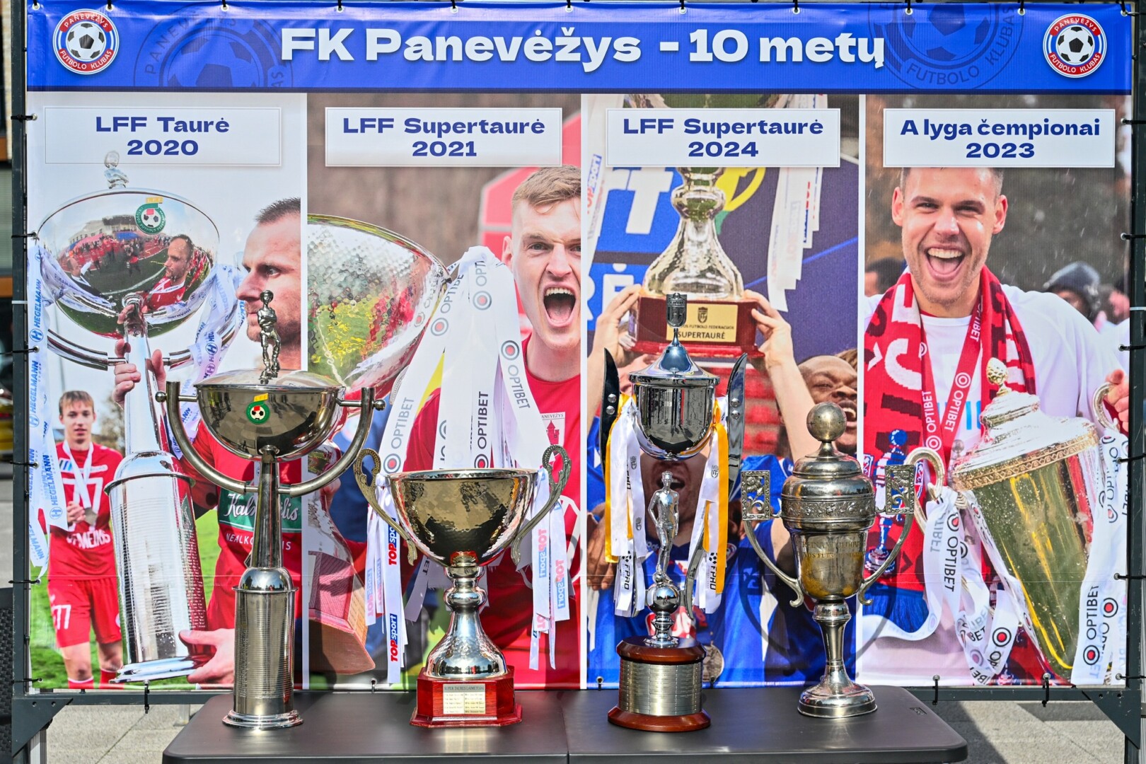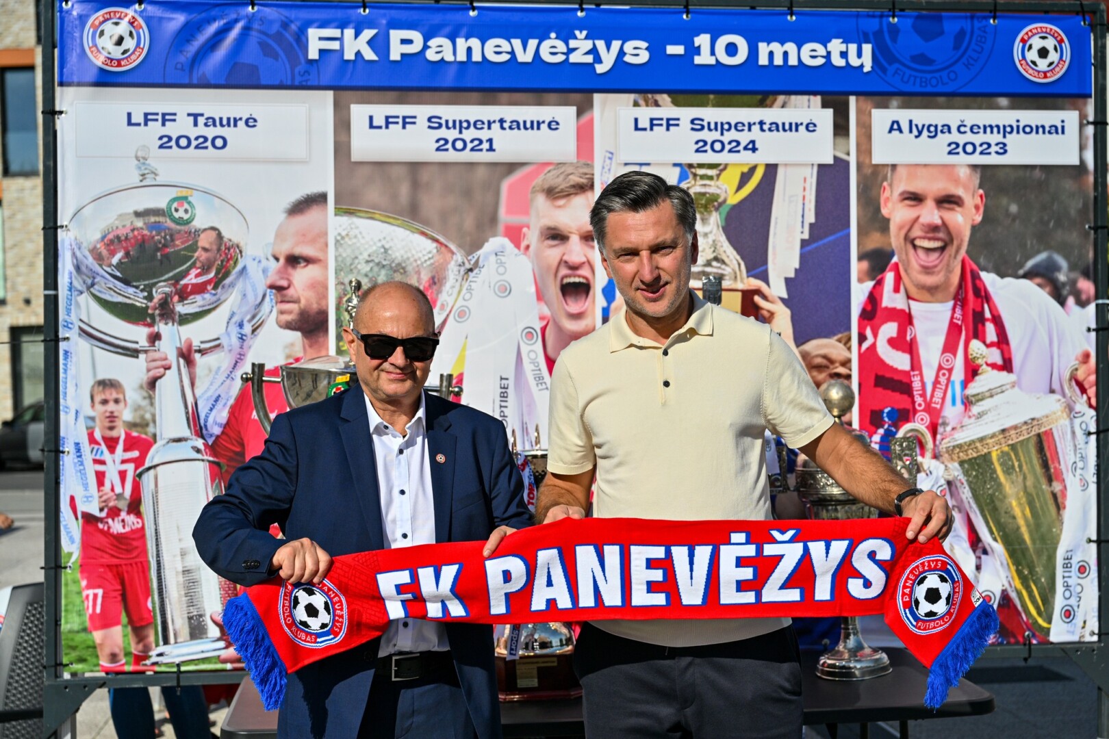Laisvės aikštė sekmadienio popietę nusidažė raudona ir mėlyna spalvomis – futbolo klubas „Panevėžys“ su panevėžiečiais atšventė 10-ąją gimtadienį.