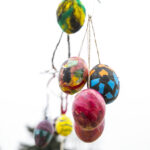 „Visą laiką ant šakų kabindavome po vieną kiaušinį, bet atsibodo. Sugalvojau iš mažų kiaušinių padaryti didelius. Vis kitaip nei visą laiką“, – apie šiemetinį Velykų medį pasakoja kūrėja.