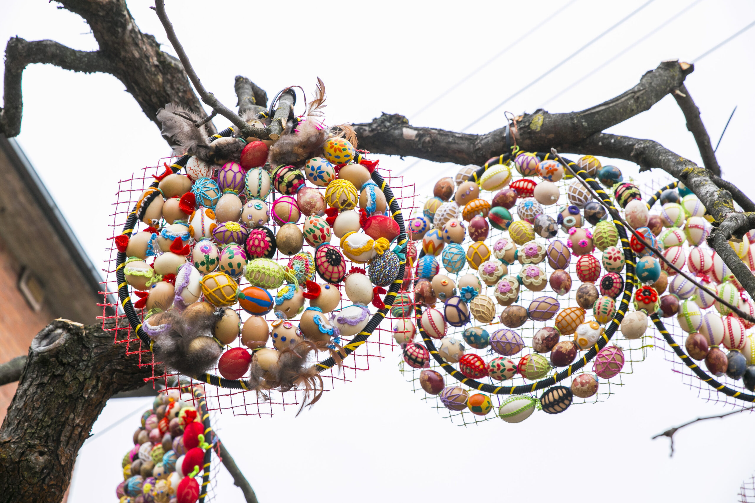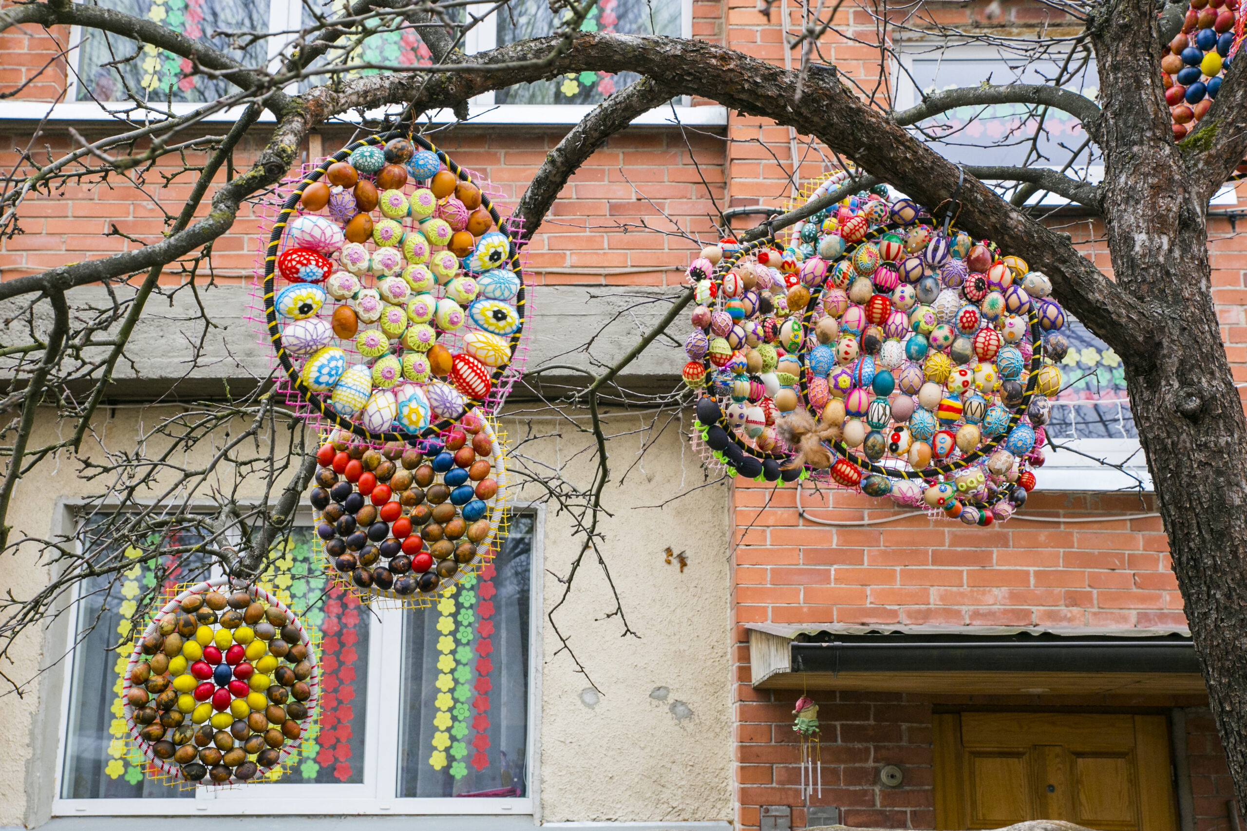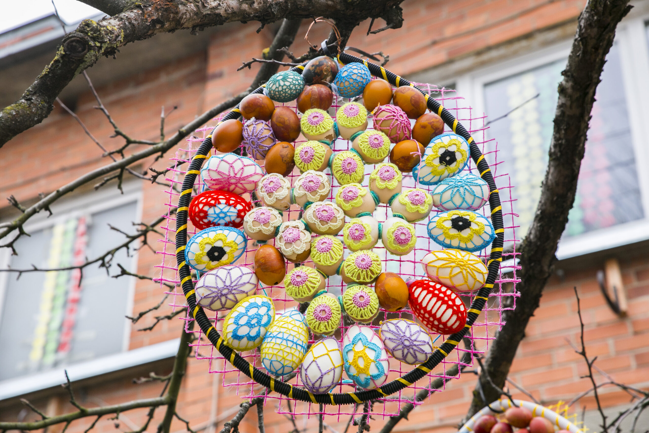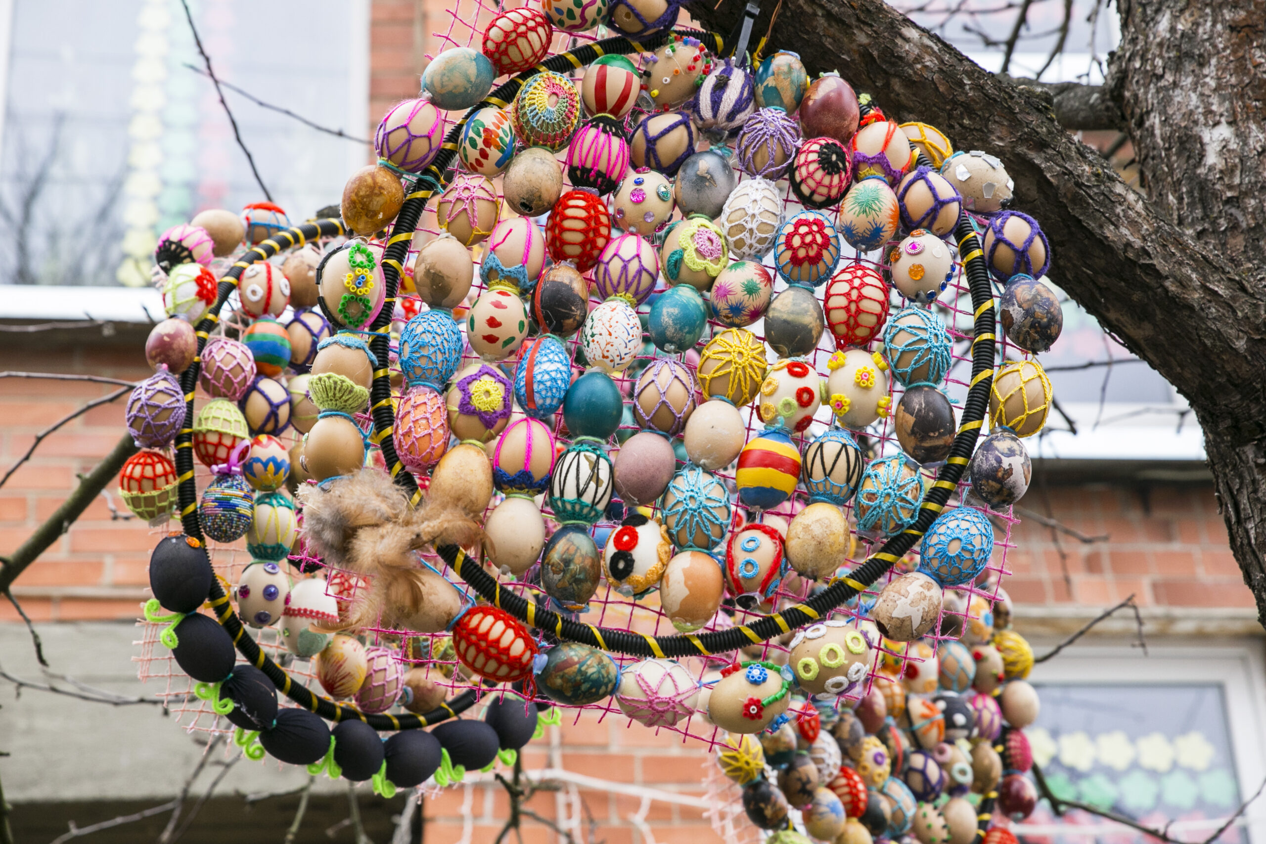 „Visą laiką ant šakų kabindavome po vieną kiaušinį, bet atsibodo. Sugalvojau iš mažų kiaušinių padaryti didelius. Vis kitaip nei visą laiką“, – apie šiemetinį Velykų medį pasakoja kūrėja.
