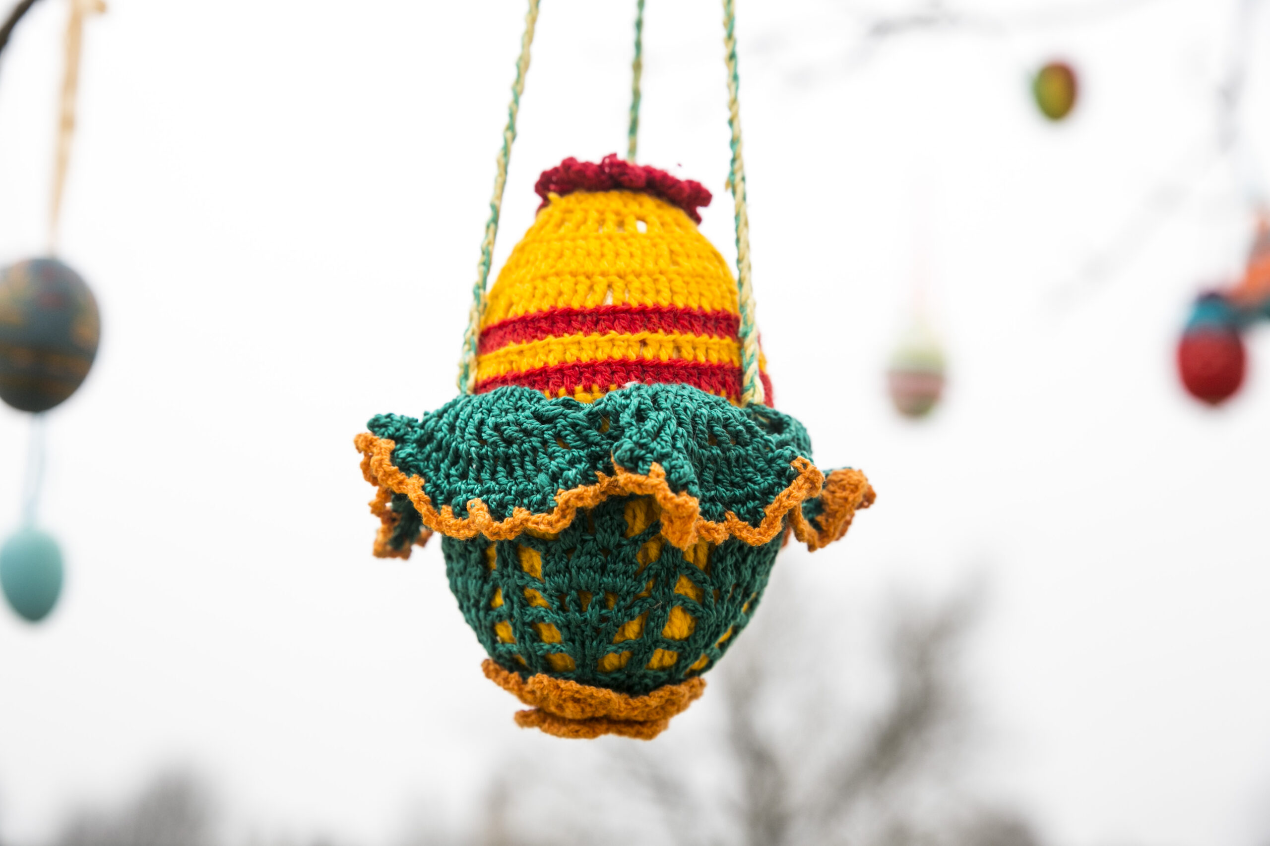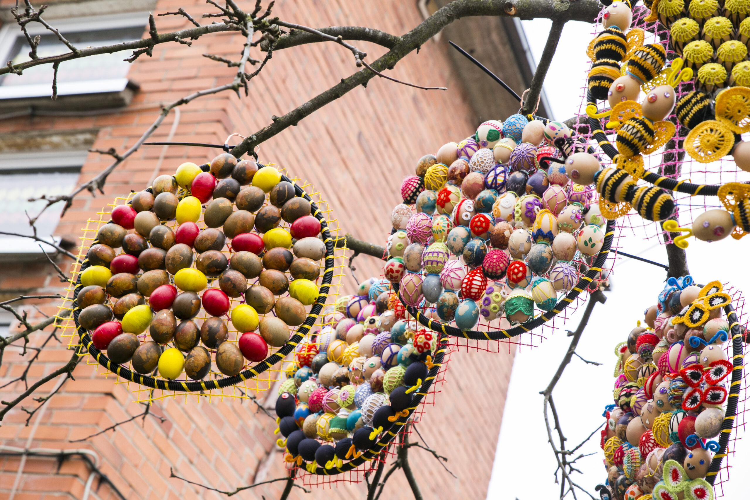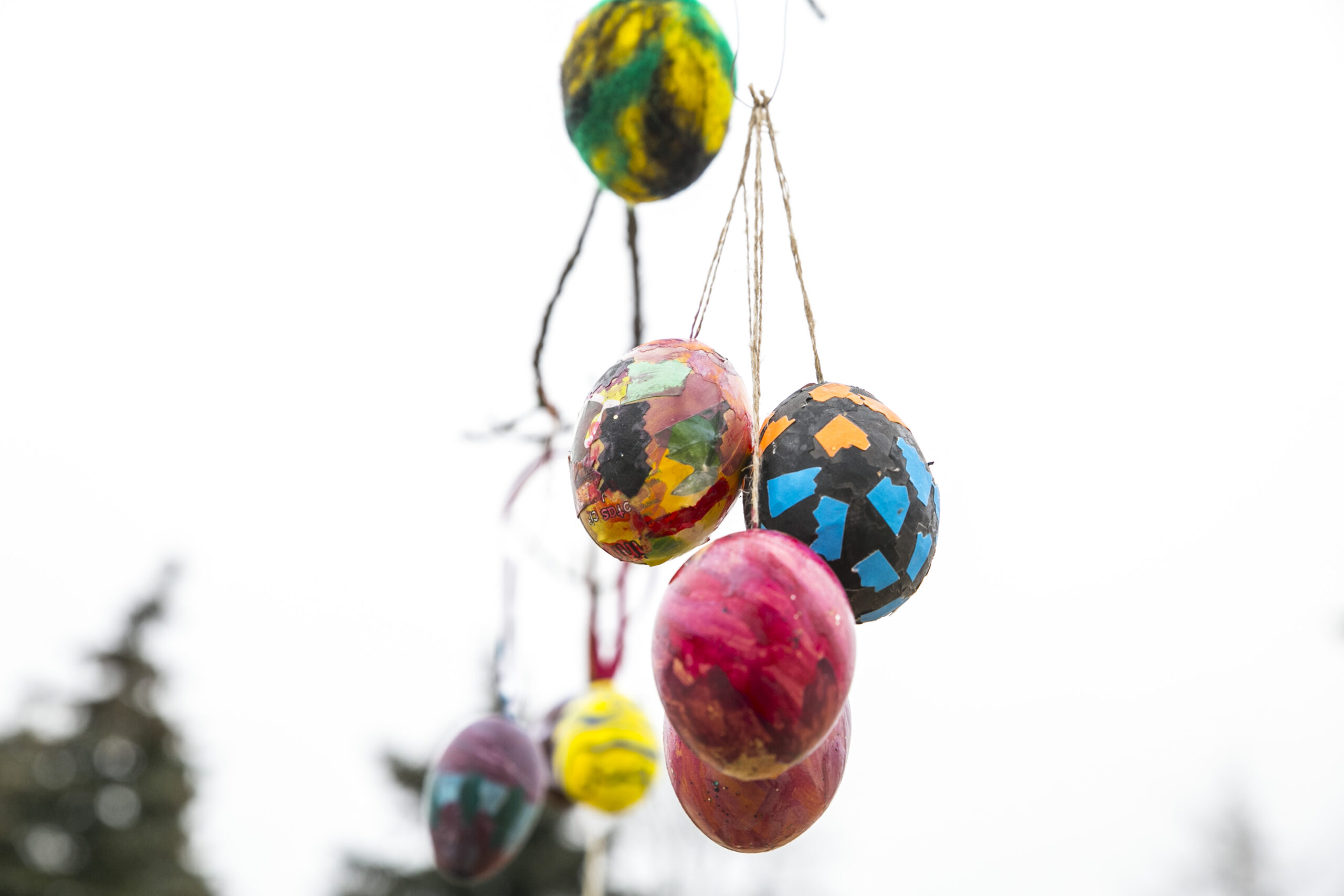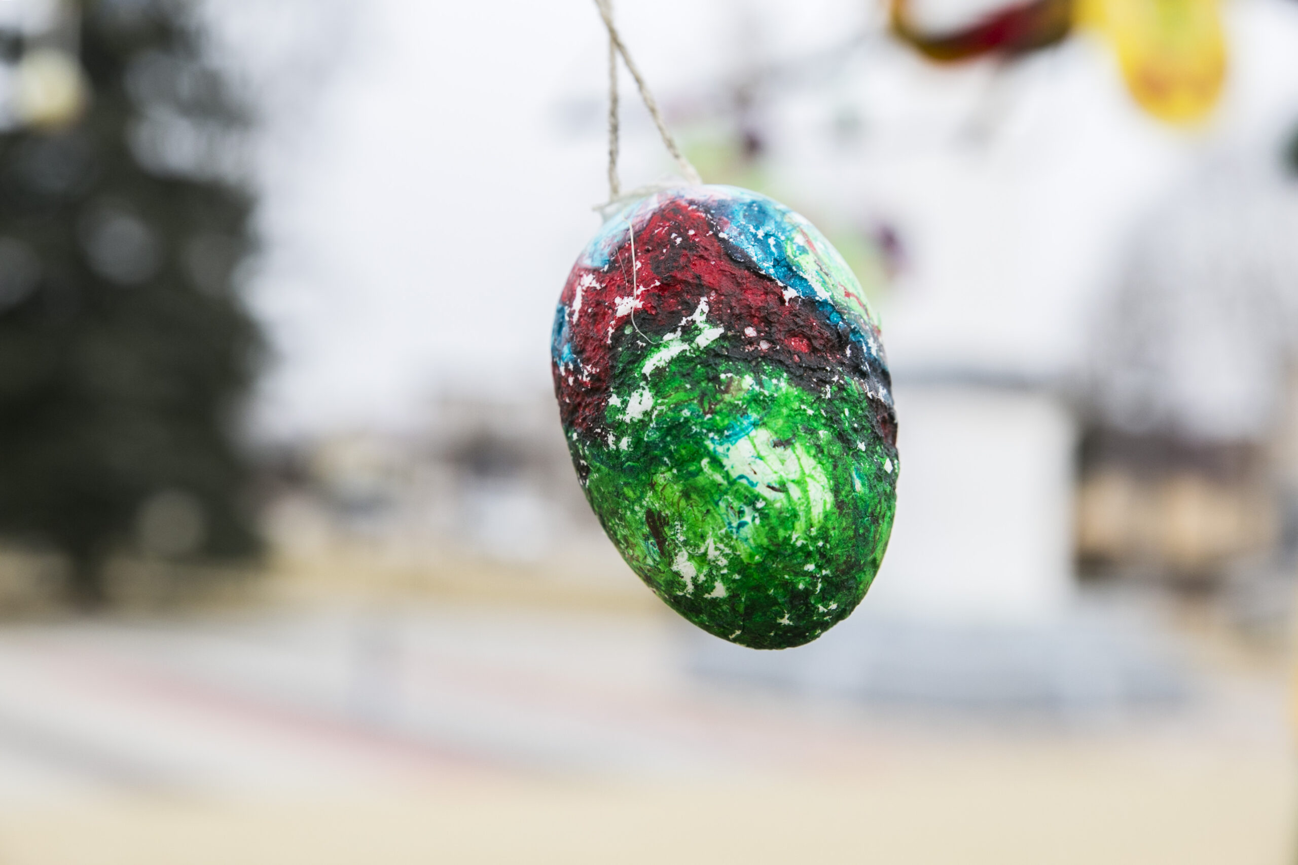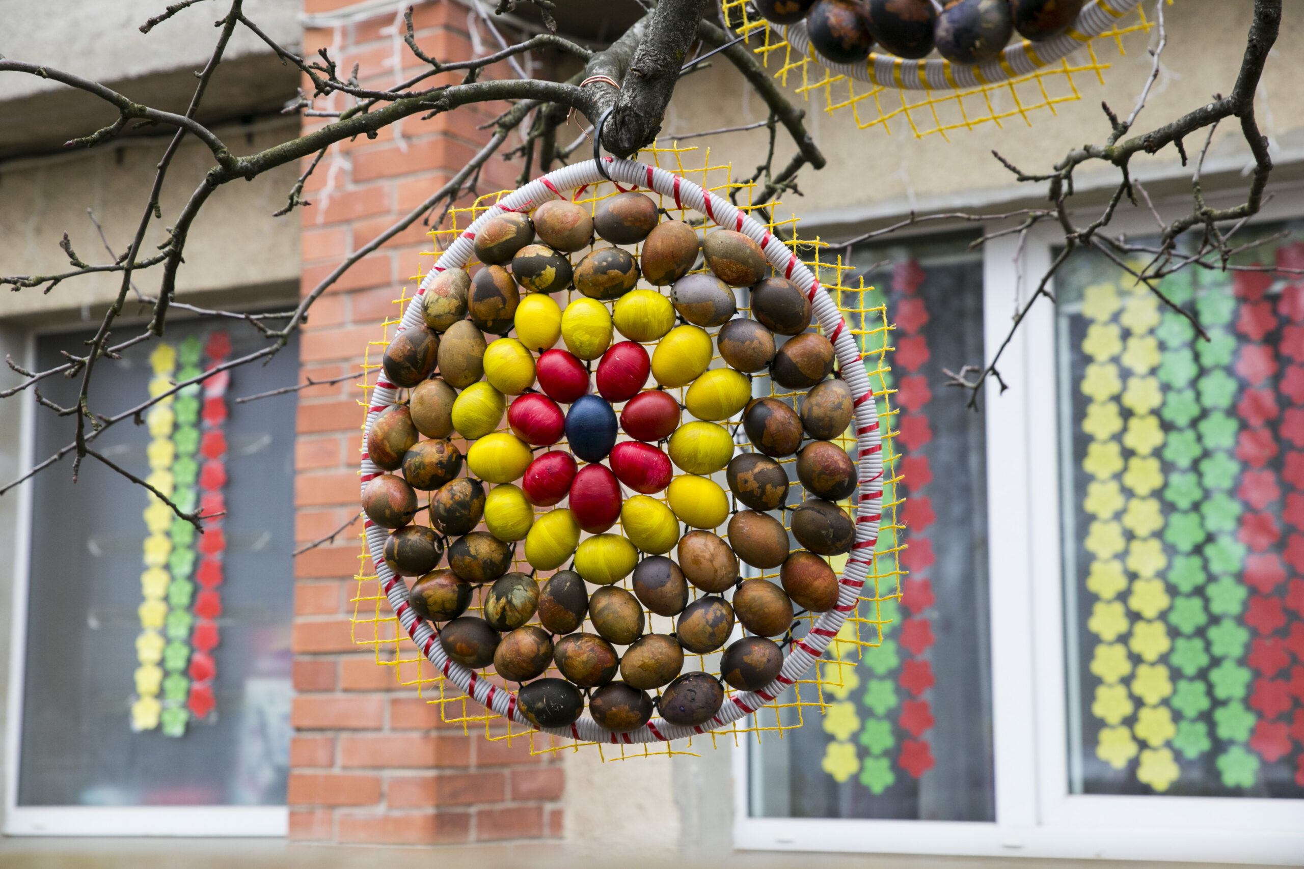 „Visą laiką ant šakų kabindavome po vieną kiaušinį, bet atsibodo. Sugalvojau iš mažų kiaušinių padaryti didelius. Vis kitaip nei visą laiką“, – apie šiemetinį Velykų medį pasakoja kūrėja.