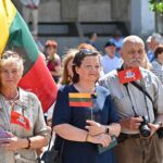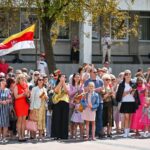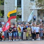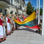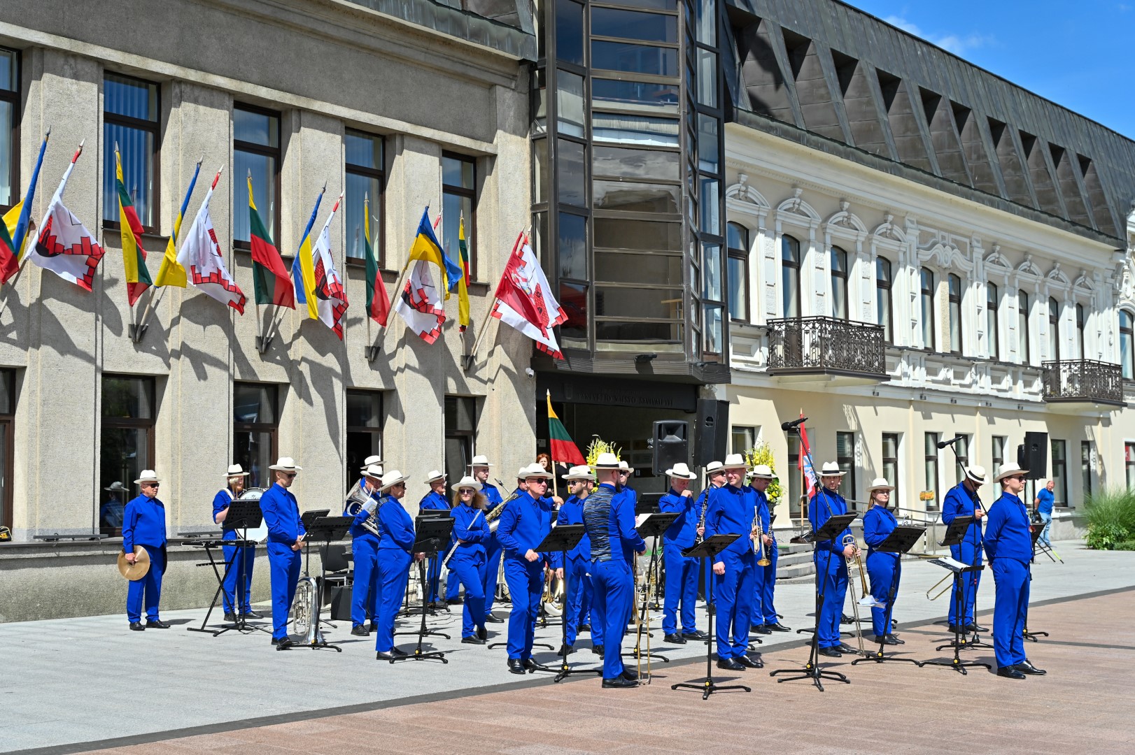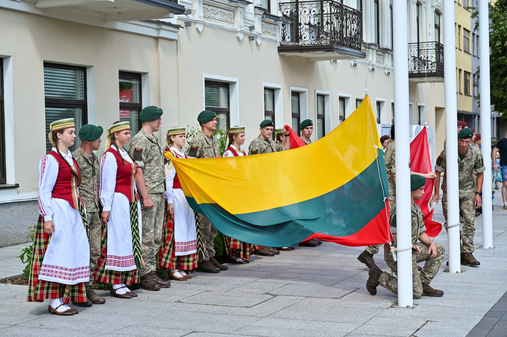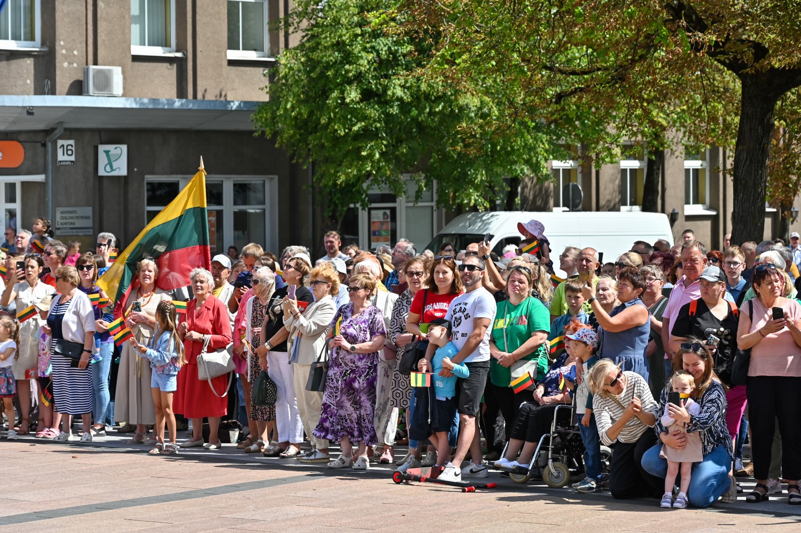 Vidurdienį Laisvės aikštėje, prie miesto Savivaldybės iškilmingai iškelta Trispalvė.
