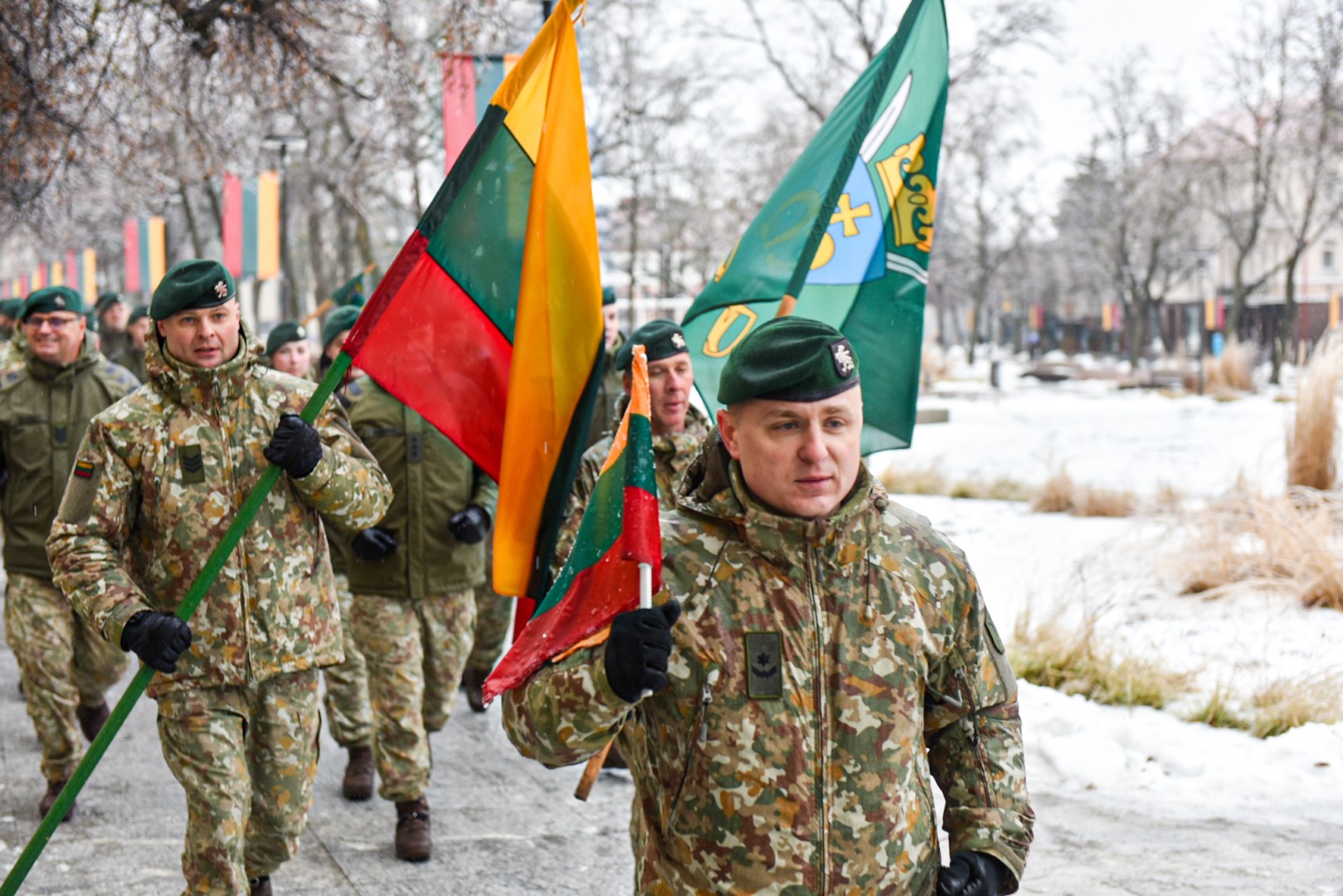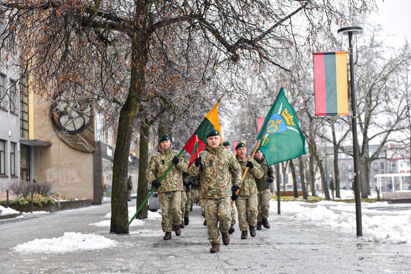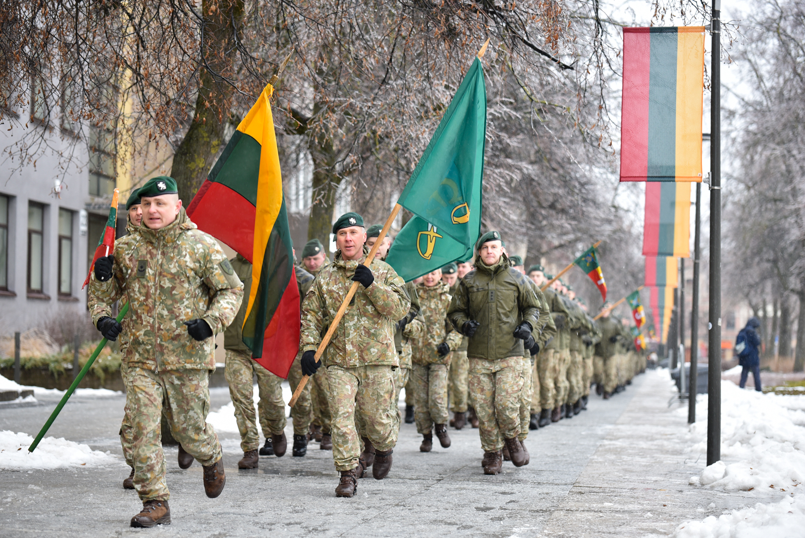 Bėgimą vainikavo šeštadienį Karaliaus Mindaugo husarų bataliono 130–ies karių, nešinų Lietuvos ir bataliono vėliavomis, aplink aikštę apibėgtas paskutinis – garbės – ratas.