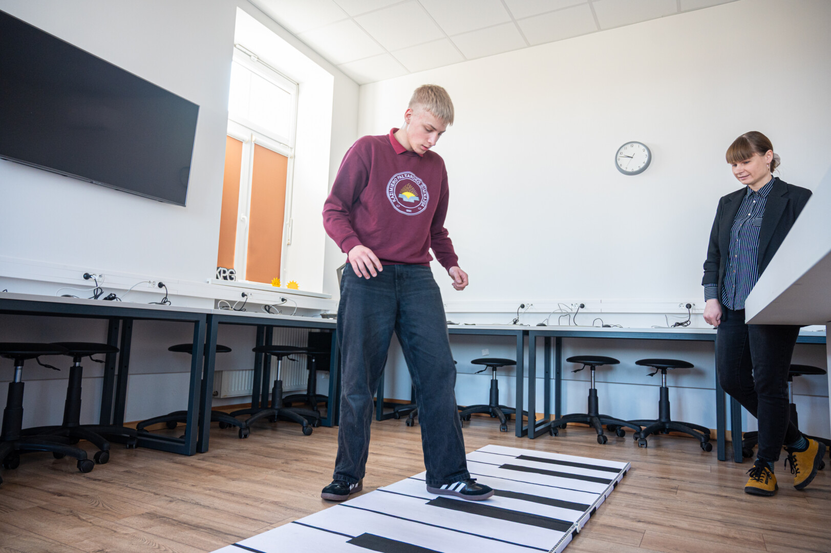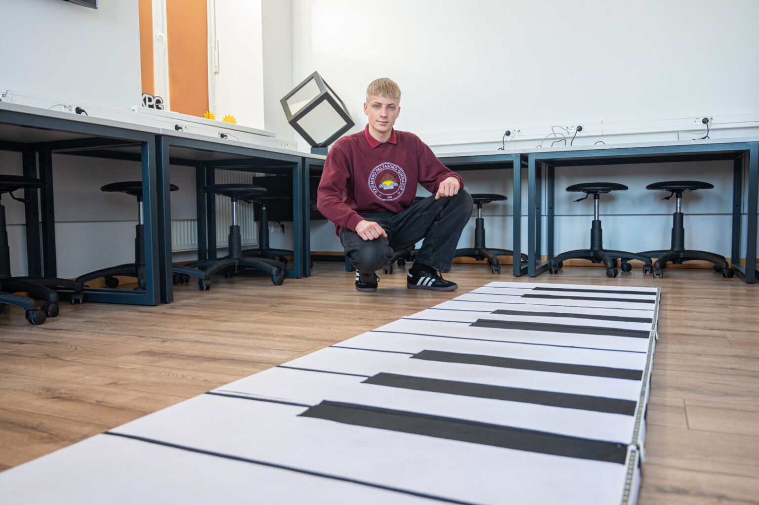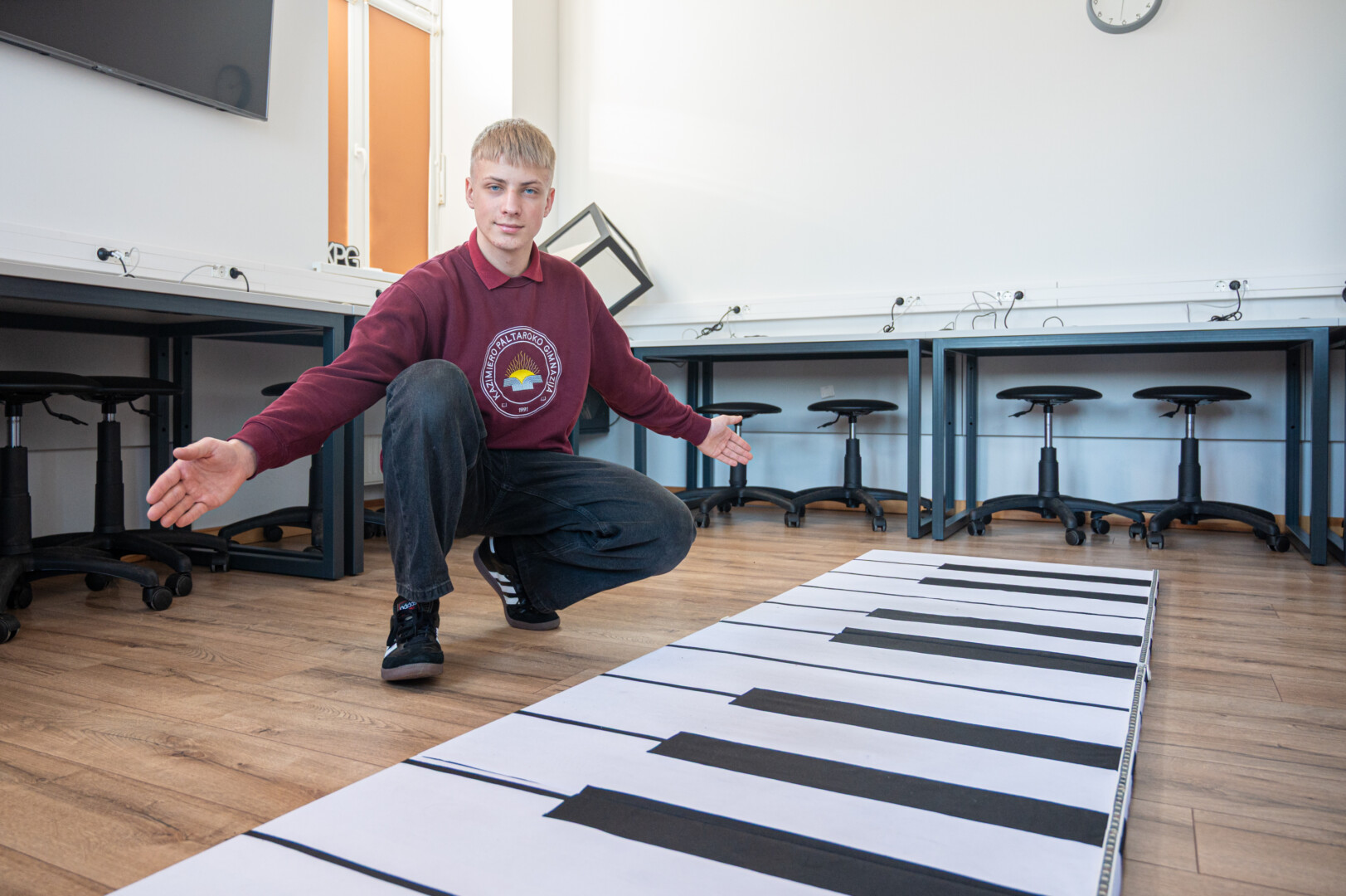 „Groti tokiu pianinu reikia nemažai pastangų – sunku išlaikyti pusiausvyrą, o po kelių minučių šokinėjimo jau ir pavargsti“, – juokiasi gimnazistas.