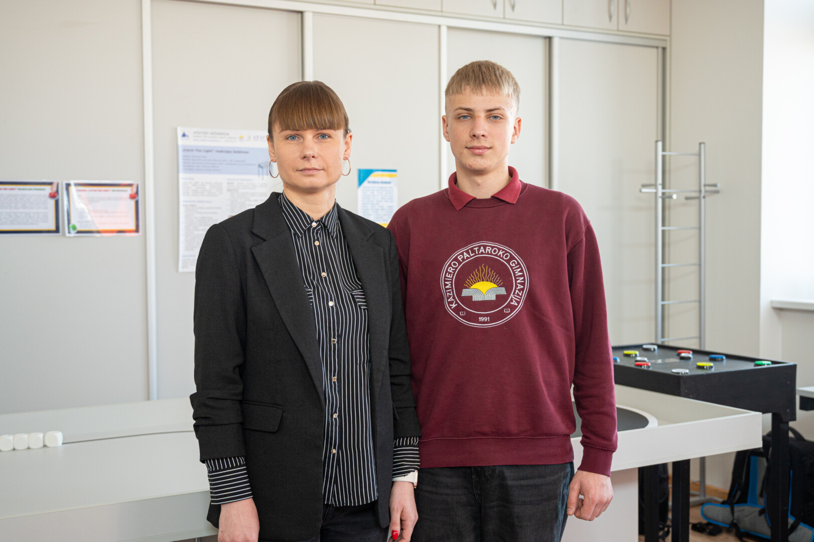 Į pagalbą išradingajam gimnazistui atskubėjo K. Paltaroko gimnazijos muzikos mokytoja Marta Putnikė ir informacinių technologijų mokytoja Laura Kuchalskienė.