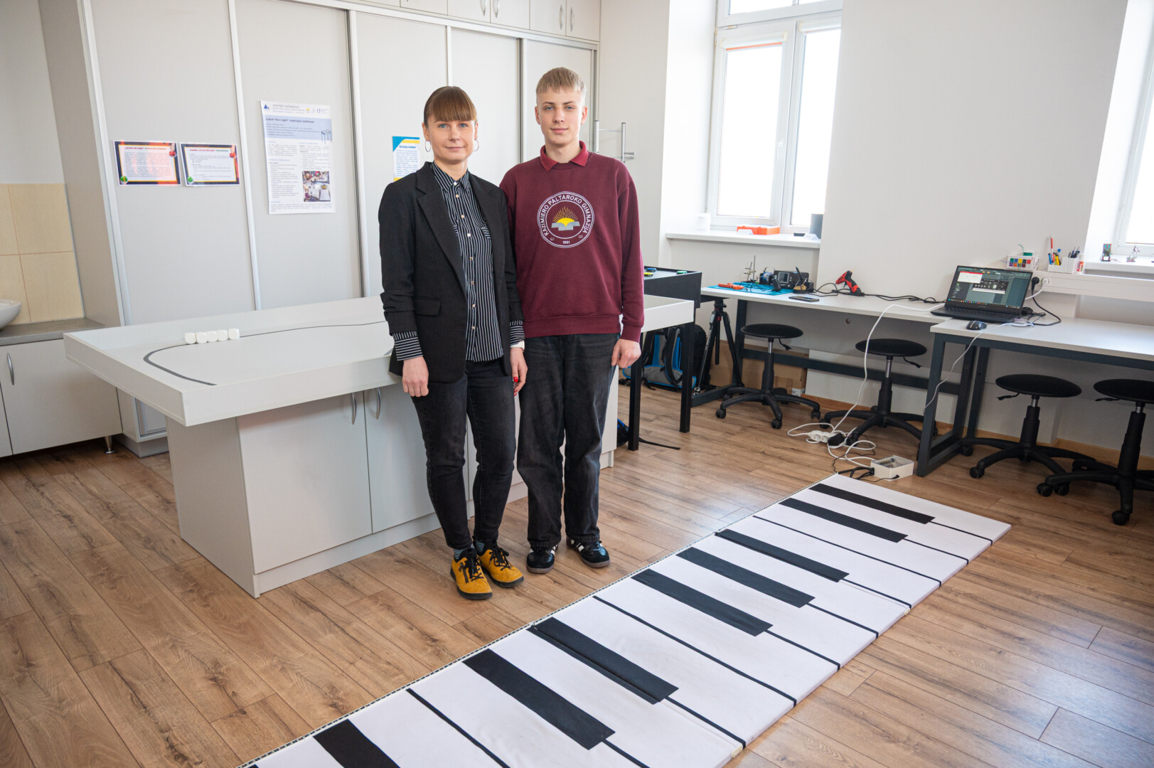 Į pagalbą išradingajam gimnazistui atskubėjo K. Paltaroko gimnazijos muzikos mokytoja Marta Putnikė ir informacinių technologijų mokytoja Laura Kuchalskienė.