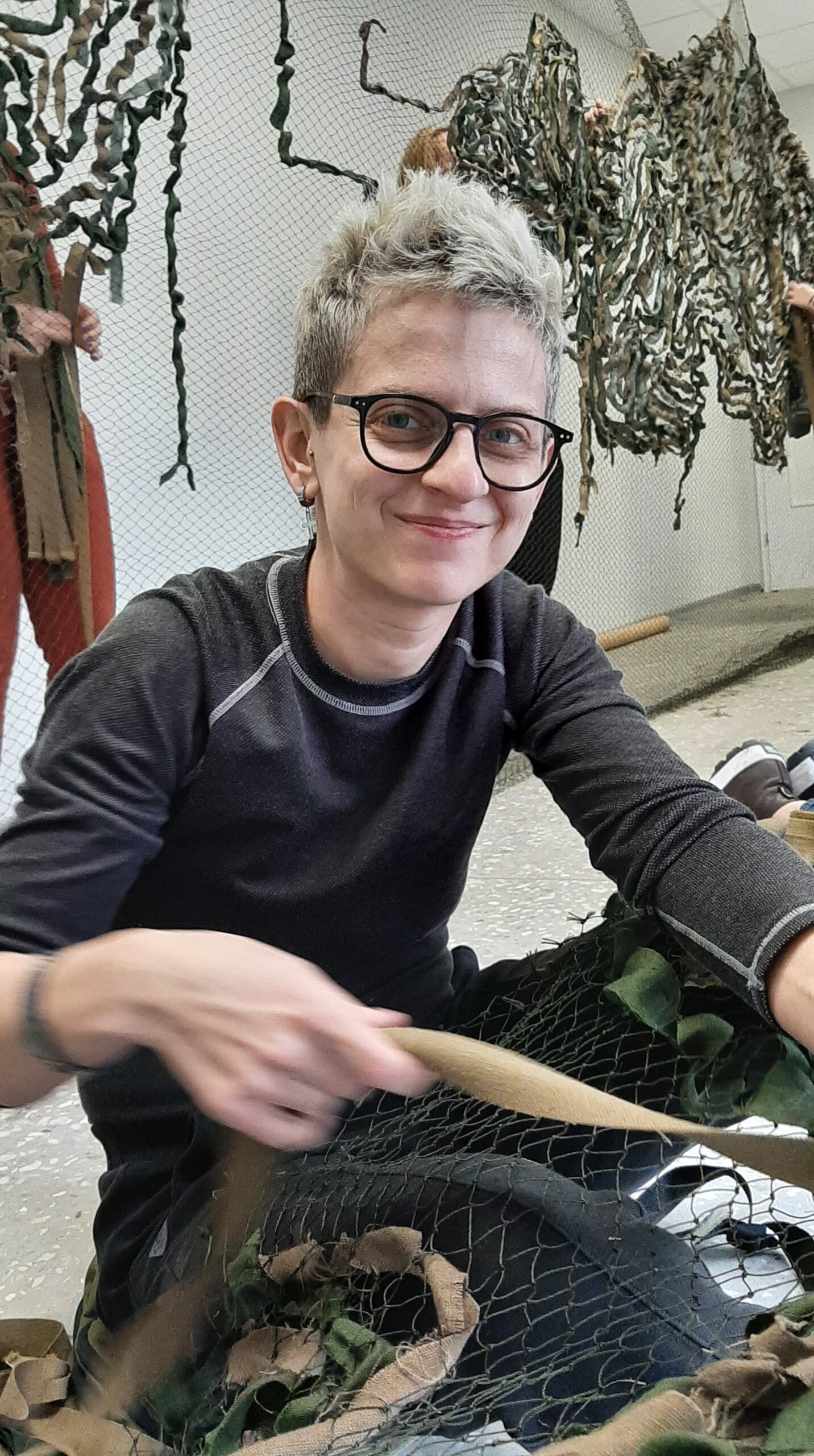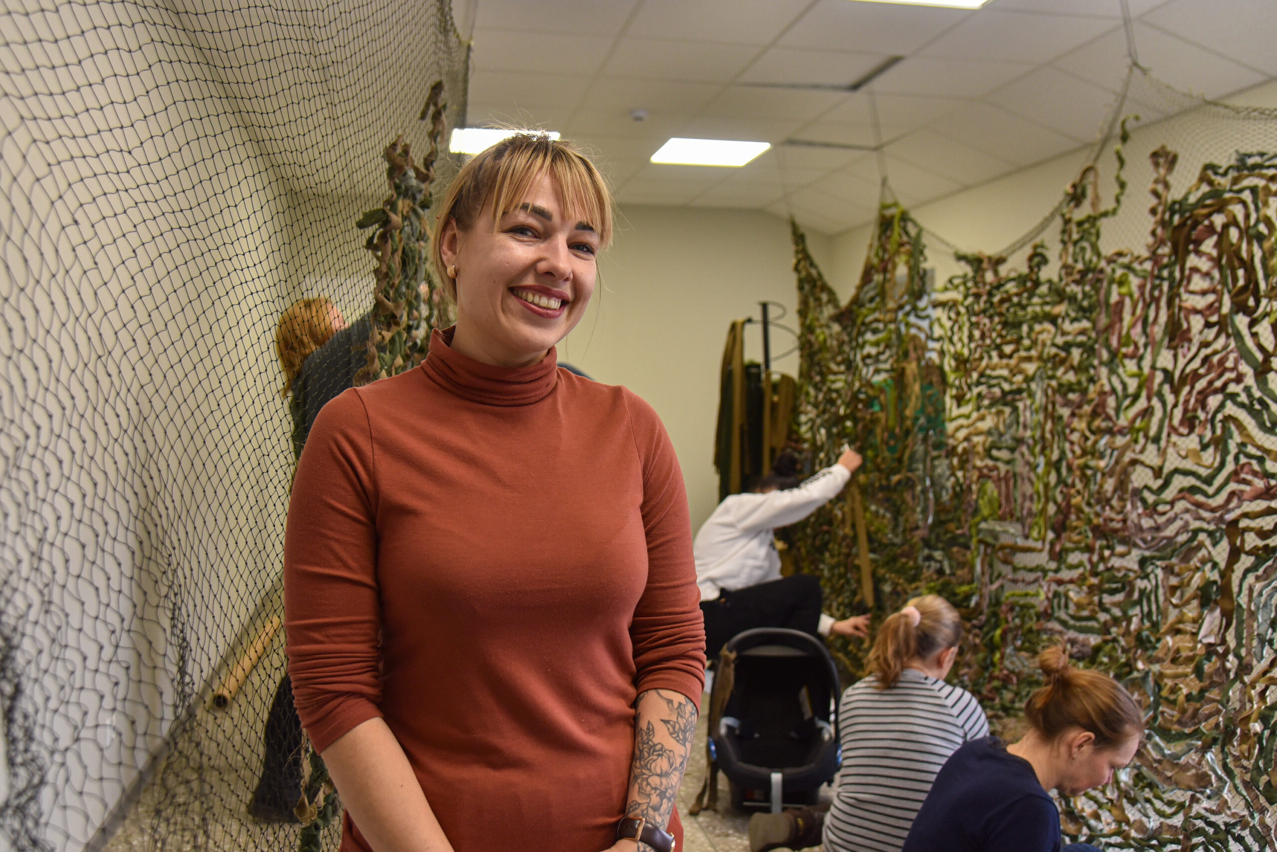Ji džiaugiasi, kad naudinga gali būti ir rišdama maskuojamuosius tinklus šalies, iš kurios teko bėgti, kovotojams.