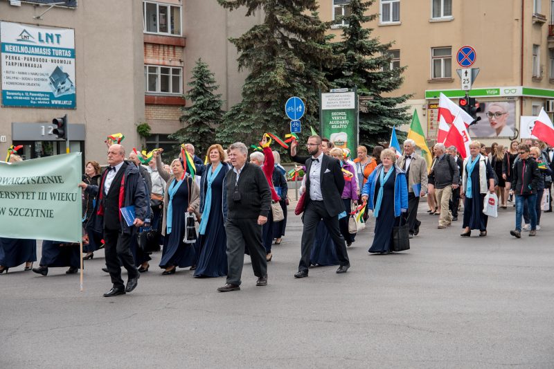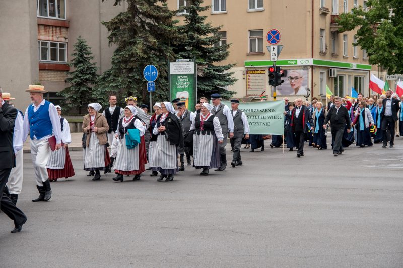 Po šventų Mišių Panevėžio Kristaus Karaliaus katedroje, šventinė dalyvių eisena keliavo iki Laisvės aikštės. Paskui, sėdę į autobusus, visi patraukė link Panevėžio arenos. Šokėjai, choristai, ansambliai, dūdų orkestras suvažiavo iš penkiolikos miestų – dauguma kolektyvų iš Lenkijos ir vienas iš Latvijos. Kartu su svečiais festivalyje dalyvauja ir panevėžiečiai – „Grandinėlės“ šokėjai, Panevėžio mišrus choras „Godos“, dainininkė Irena Snabaitienė.