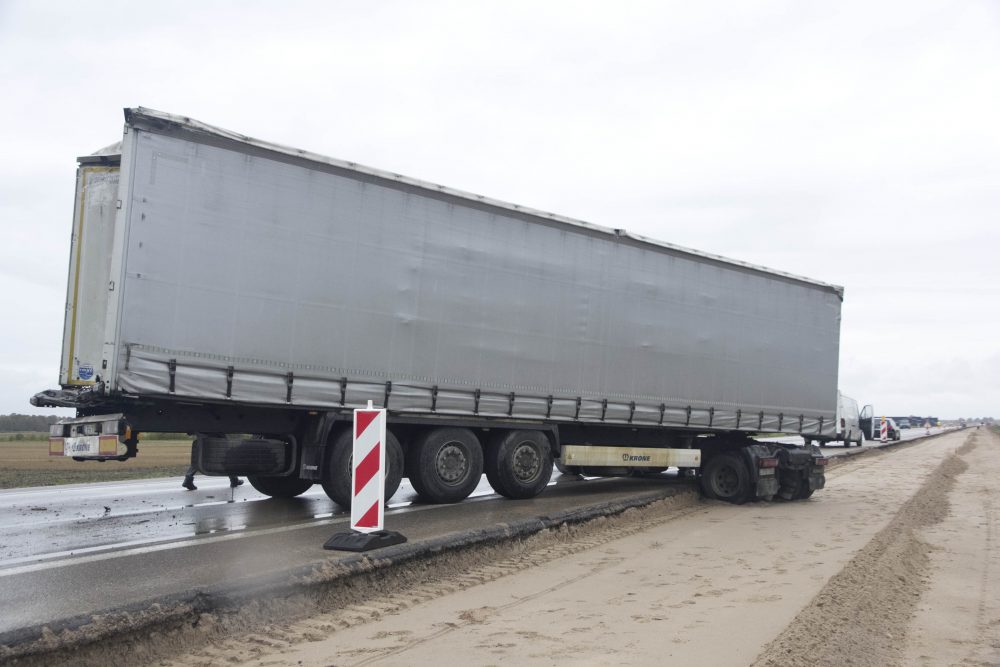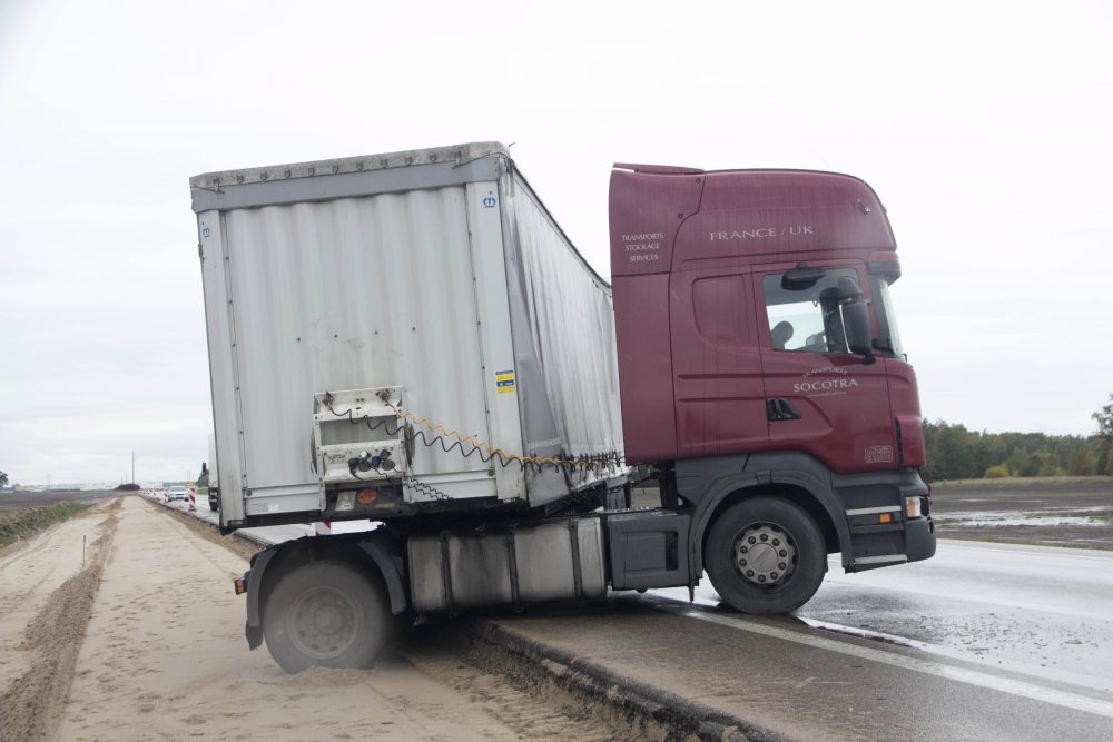 Rekonstruojamą Panevėžio aplinkkelį vairuotojai ironiškai praminė linksmiausiu Lietuvoje. Vien antradienį jame nuo kelio nulėkė du vilkikai.