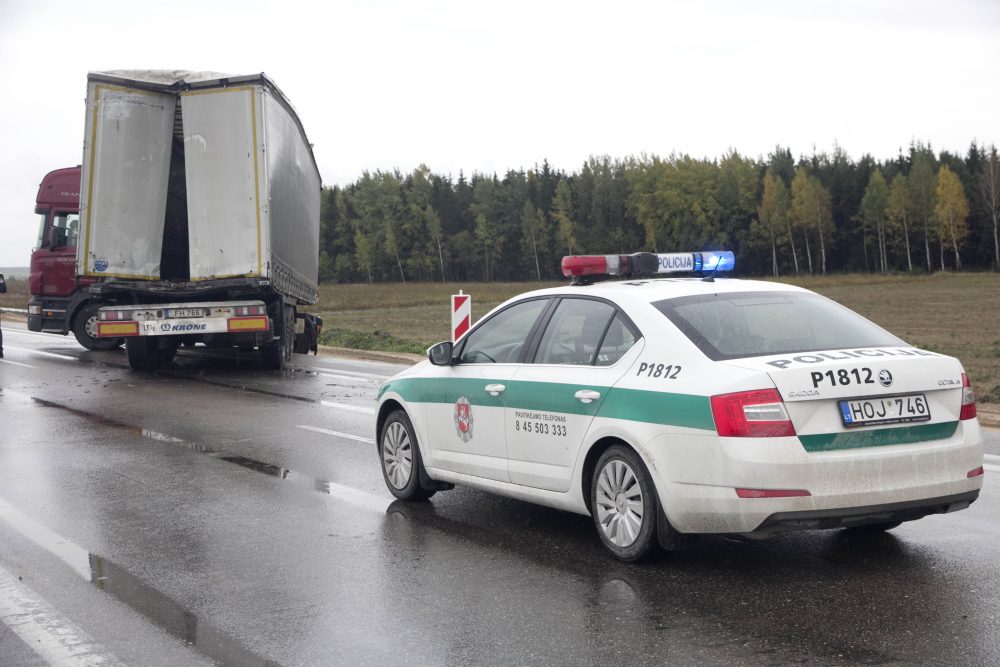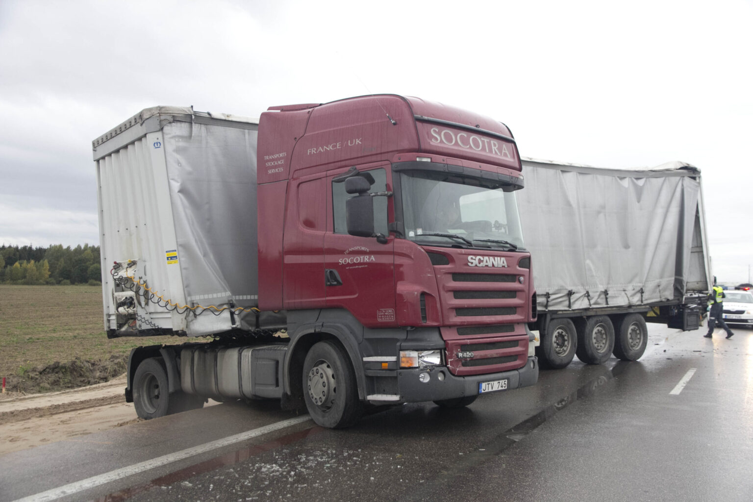 Pirmoji nelaimė įvyko apie 8 val. Panevėžio aplinkkelio 2-ajame kilometre, netoli įmonės „Dominari“. Esant šlapiai kelio dangai vairuotojo nesuvaldytas vilkikas nuslydo nuo kelio ir vertėsi į griovį. Eismo įvykis registruotas kaip techninis. Žmonės per jį nenukentėjo.