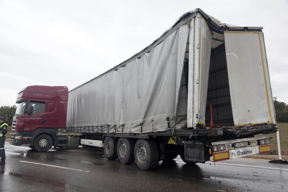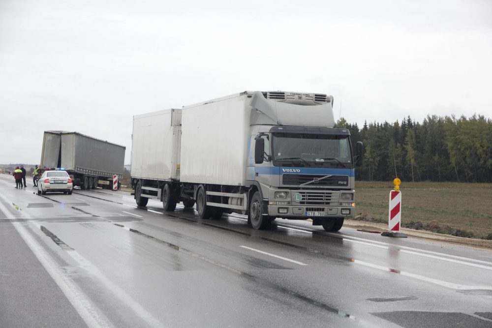 Šį kartą į eismo įvykį pakliuvo net keturios transporto priemonės: du vilkikai, mikroautobusas ir lengvasis automobilis.