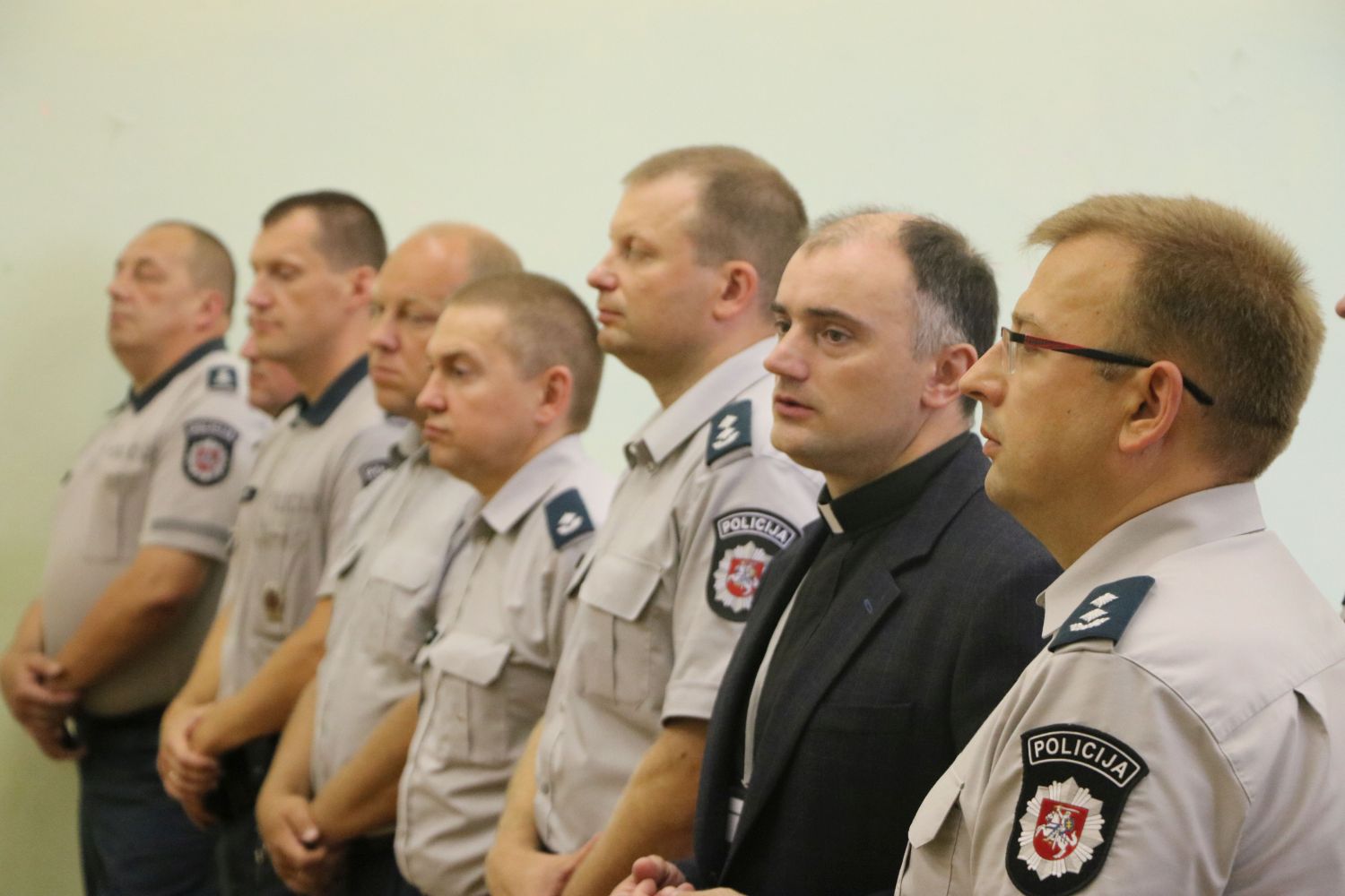 Policijos kapelionas Eugenijus Troickis palaimino naujus pareigūnus, linkėjo, kad Dievo palaima lydėtų asmeniniame gyvenime ir tarnyboje, kai teks priimti svarbius sprendimus.