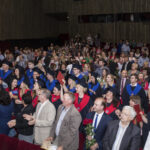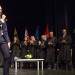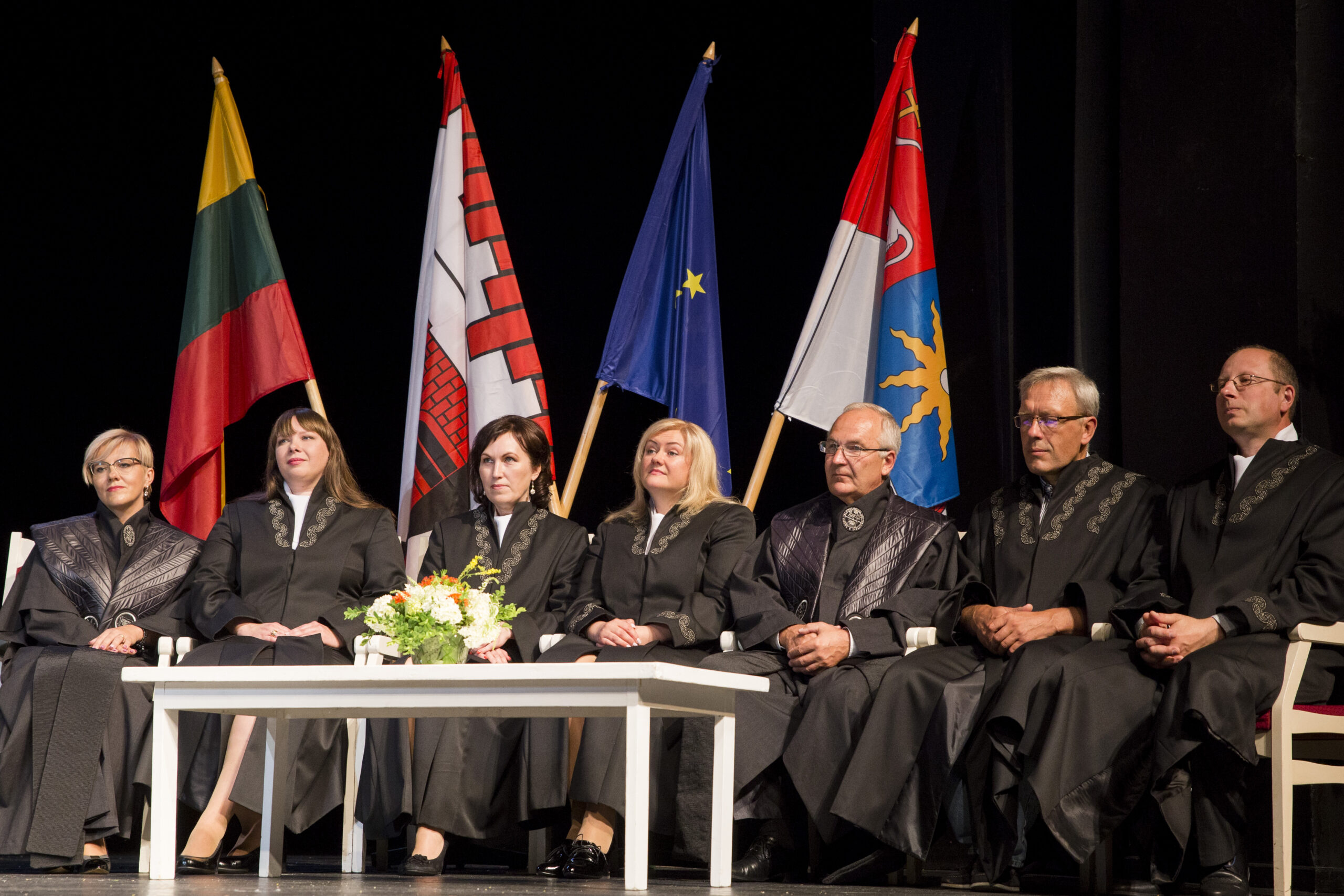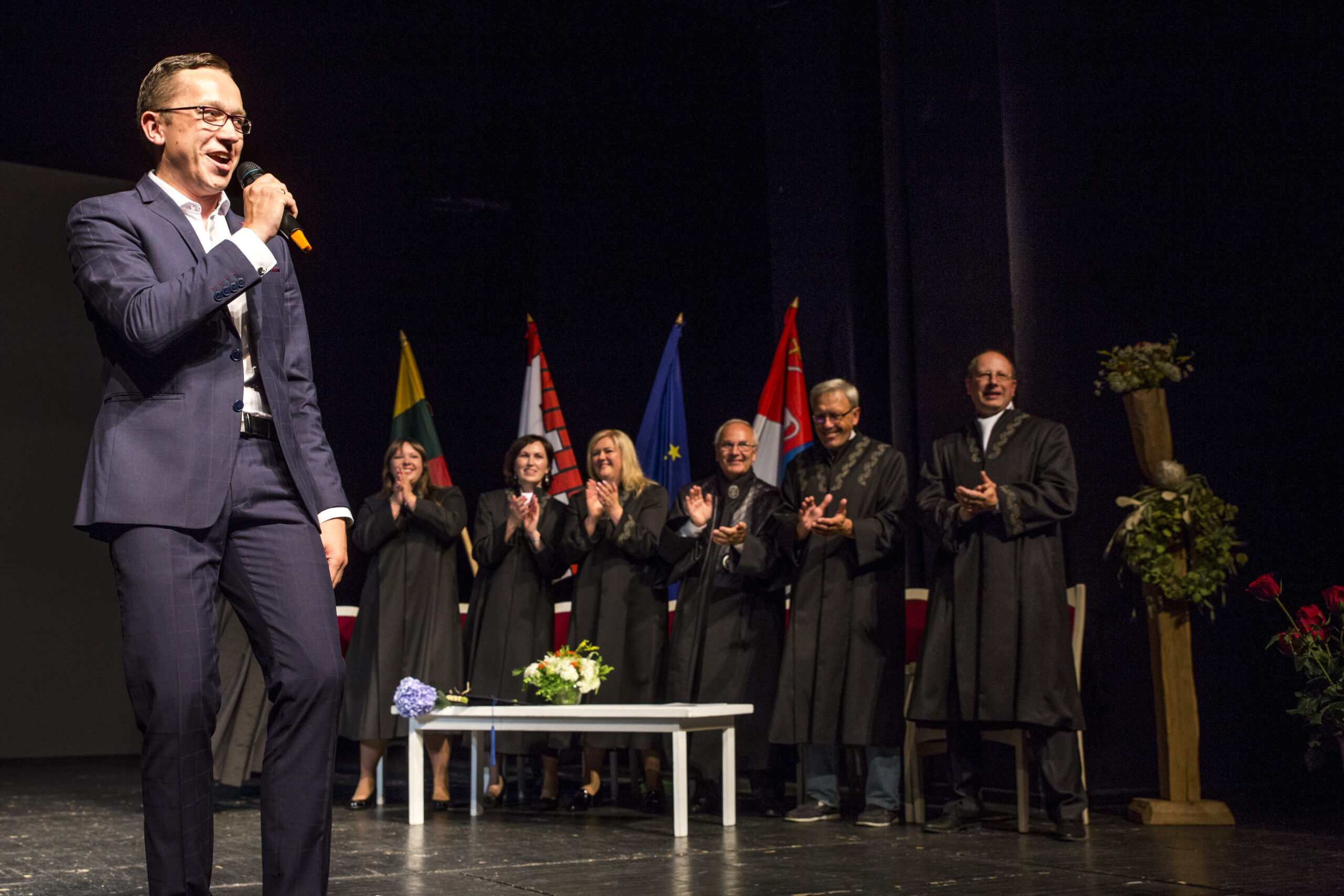 Po iškilmingos sveikinimo kalbos nuskambėjo studentų himnas „Gaudeamus igitur“. Studentams giedoti himną padėjo panevėžietis dainininkas Vaidas Dzežulskis.
