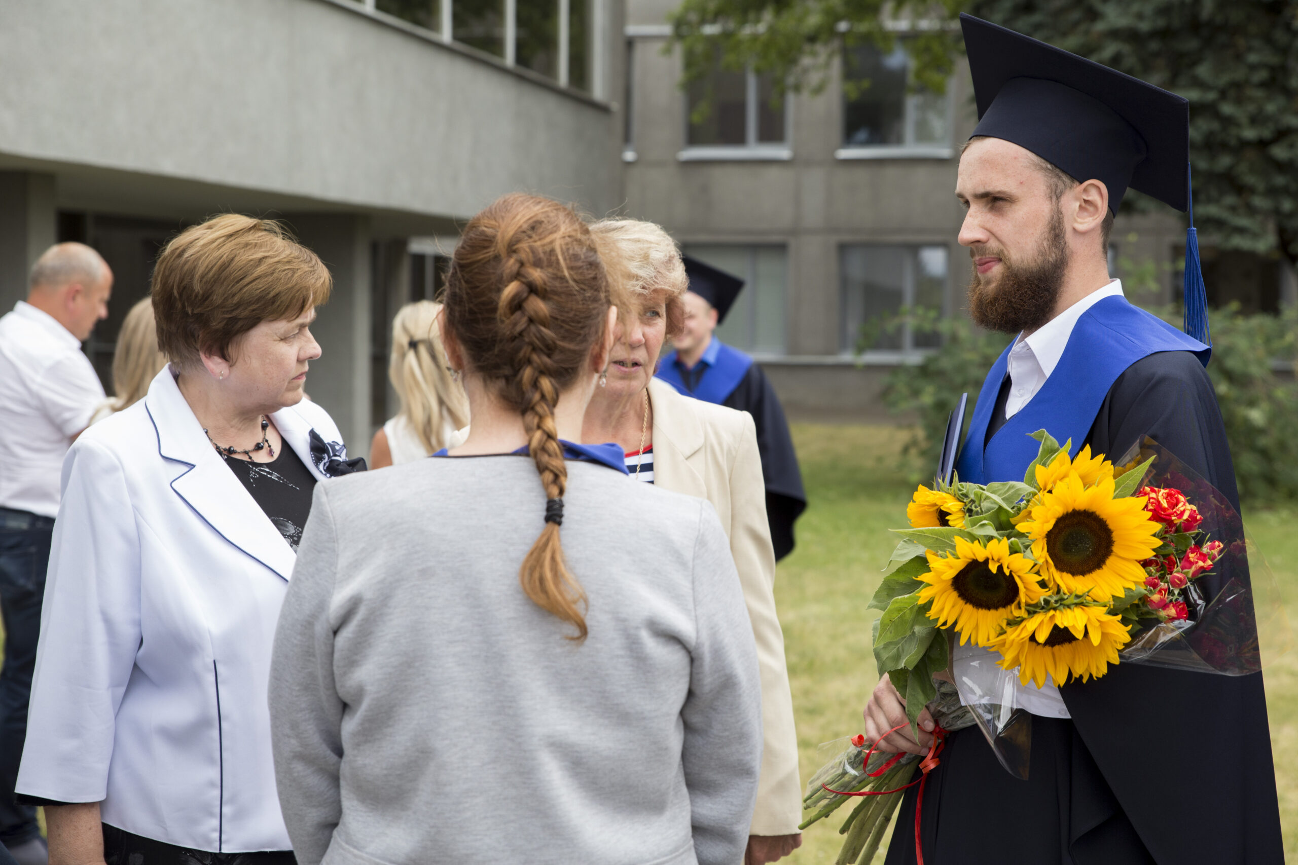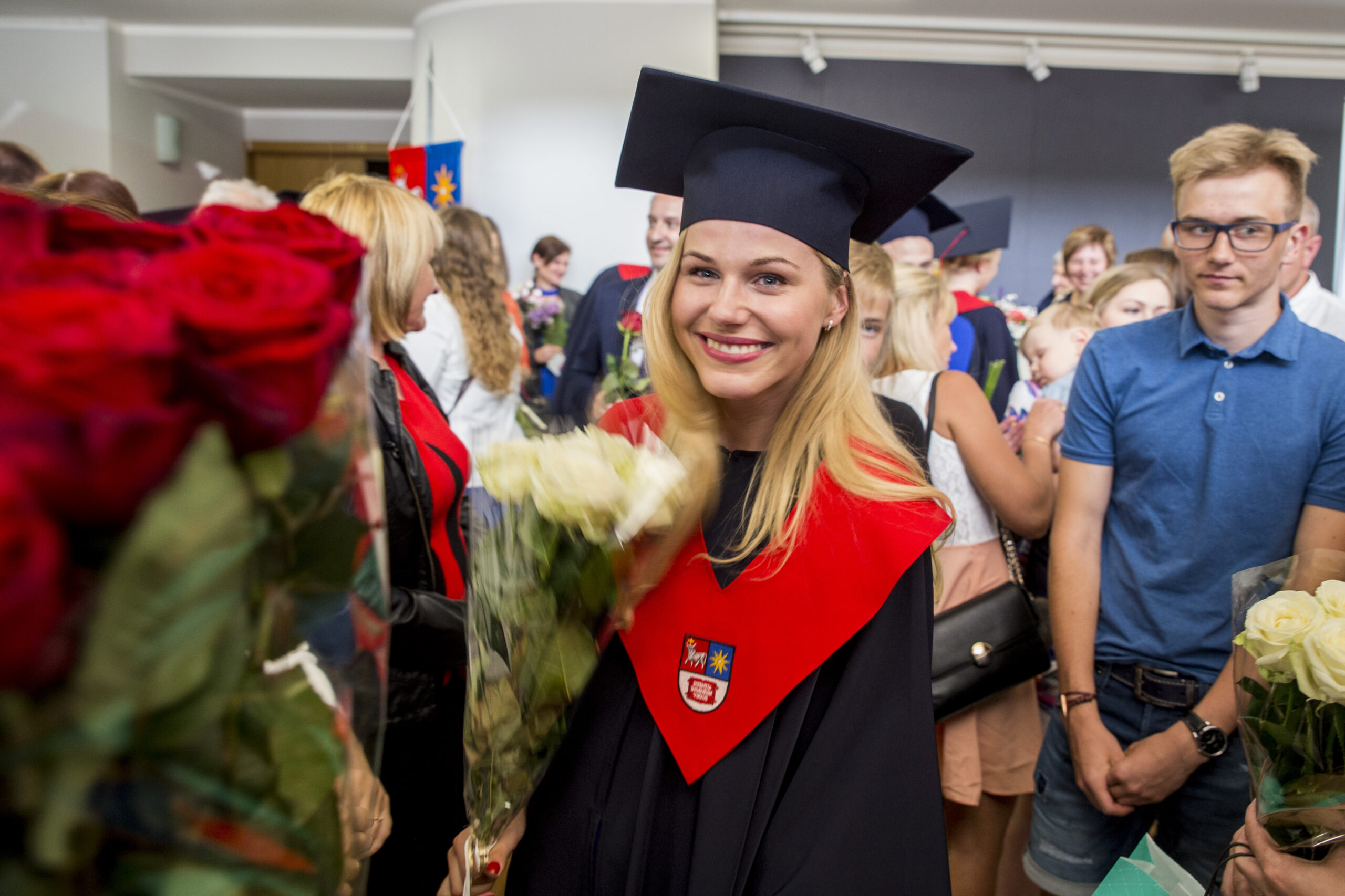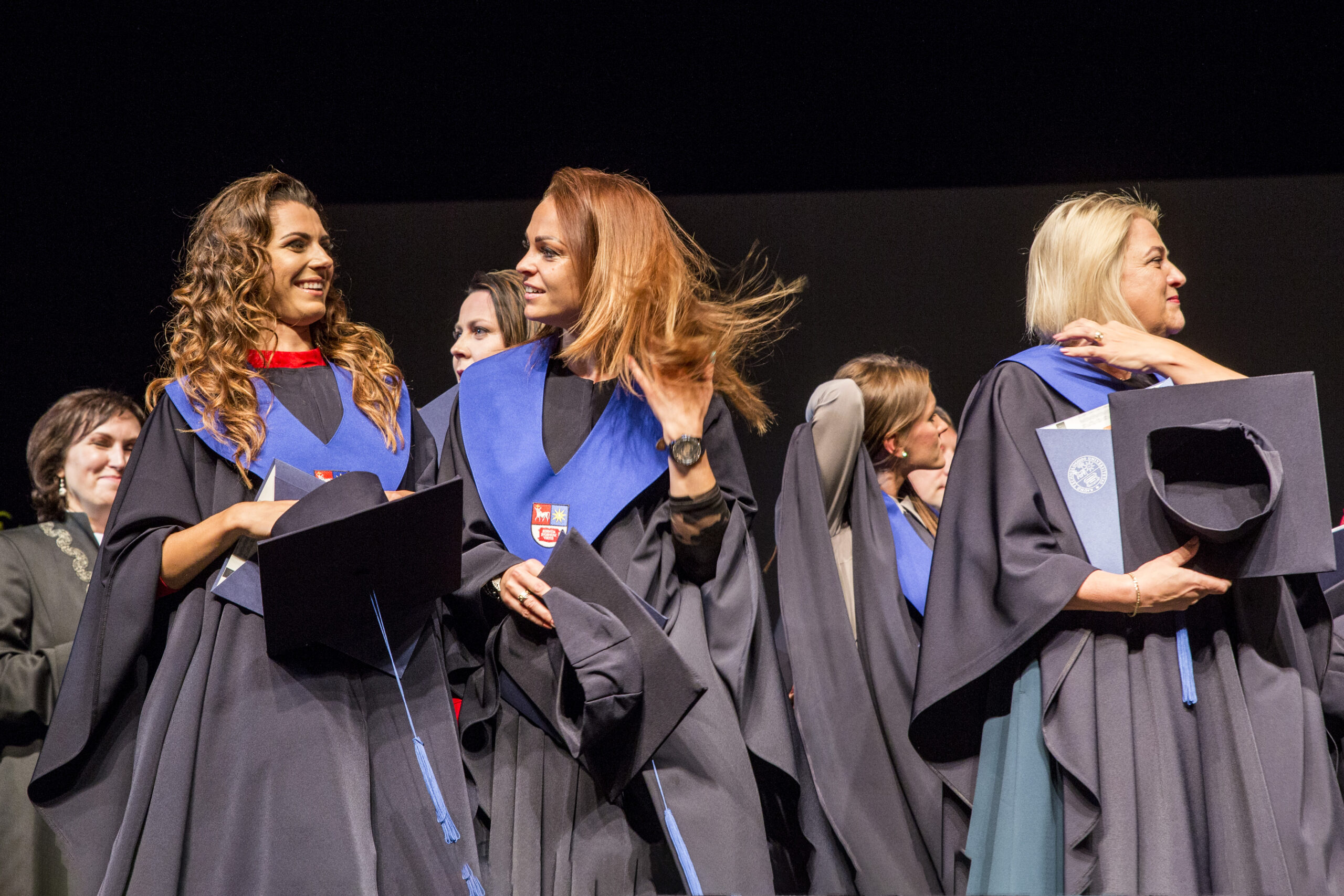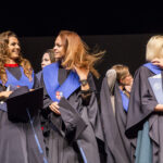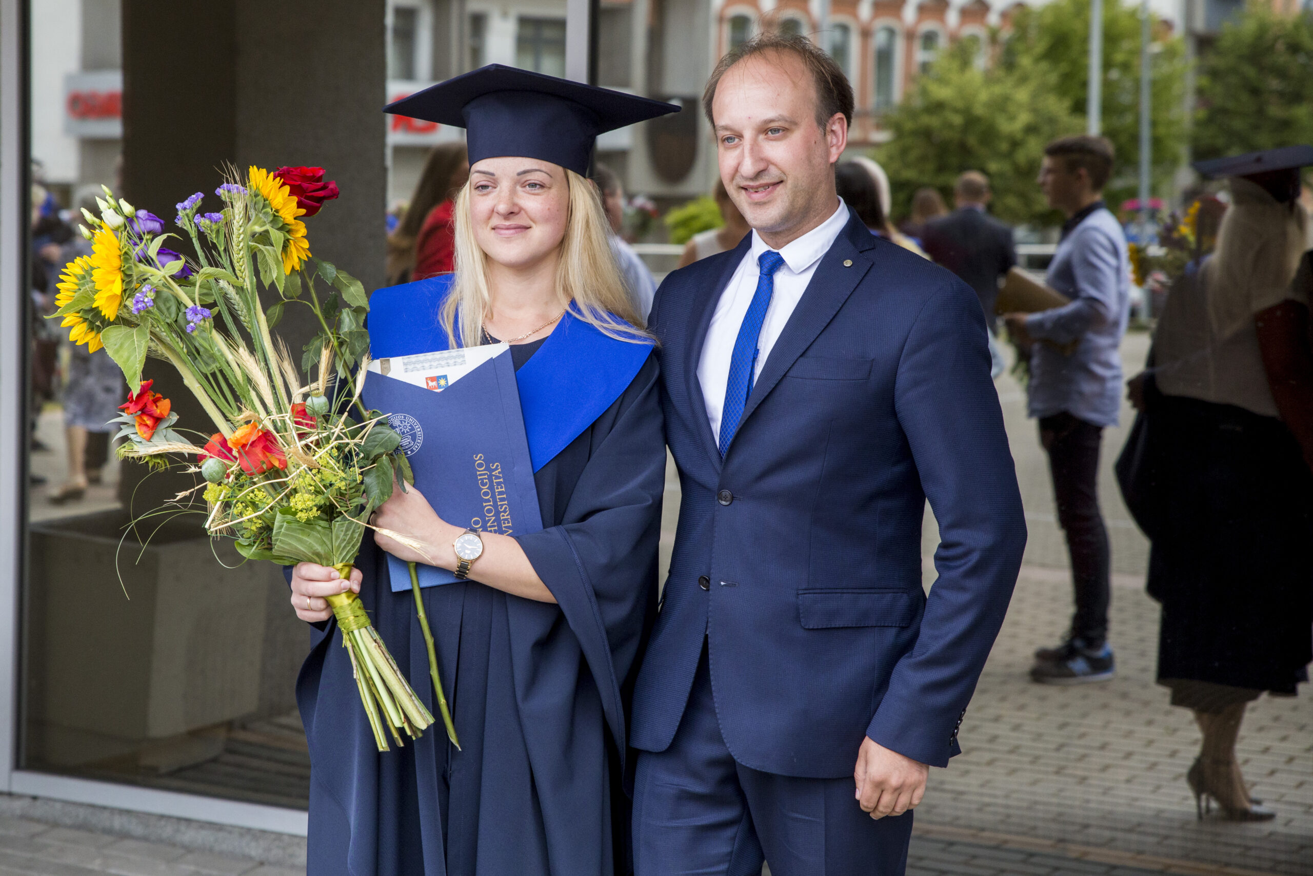 Skambi muzika mantijomis pasipuošusią minią lydėjo ir Klaipėdos-Nemuno gatvėmis link miesto arenos. Joje surengta iškilminga diplomų įteikimo ceremonija.