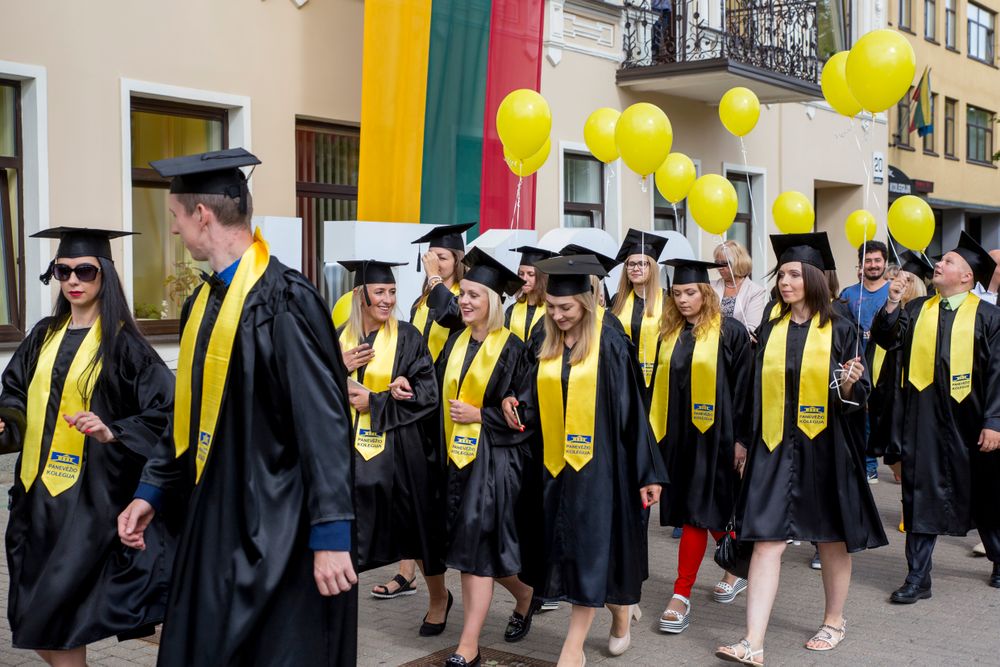 Panevėžio gatves nuo penktadienio ryto užtvindė mantijomis pasipuošęs jaunimas. Studijų pabaigą liudijantys aukštojo mokslo diplomai įteikti kolegijos ir Kauno technologijos universiteto Panevėžio technologijų ir verslo fakulteto absolventams. Šįmet miesto aukštosiose mokyklose studijas baigė 373 absolventai.